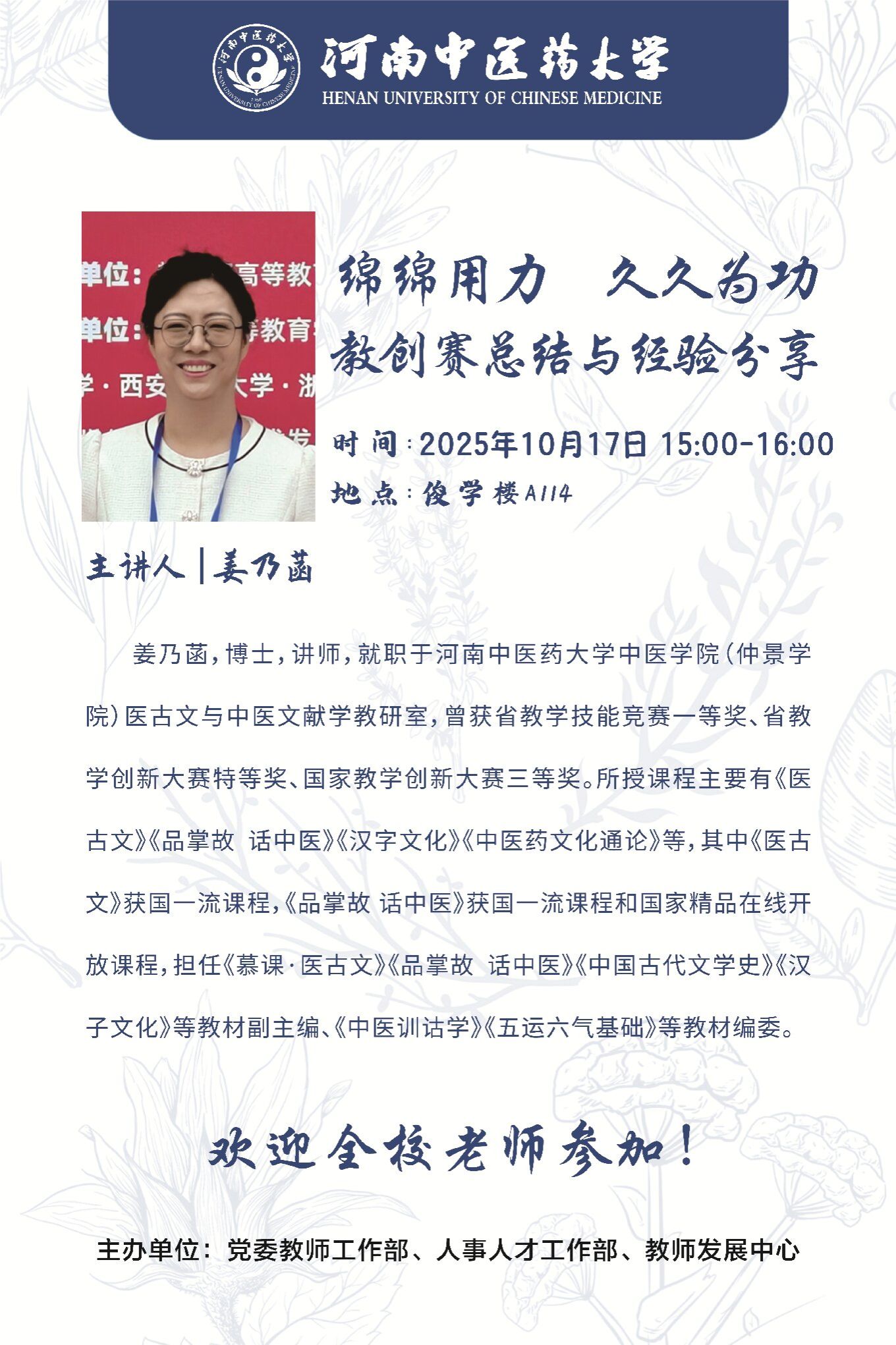 本草书院开展“在创新中耕耘,在奋斗中成长”科研启蒙专题讲座