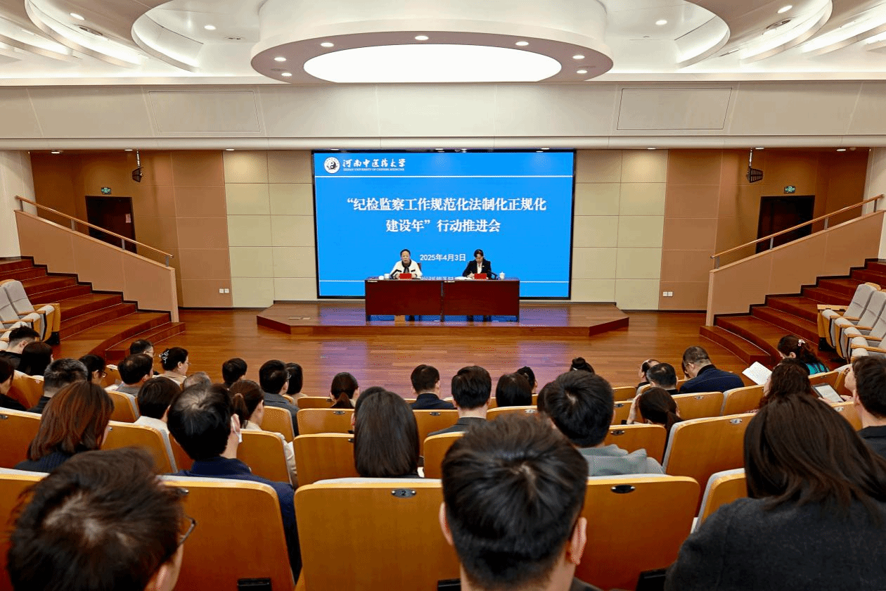 会上,校纪委副书记赵群英宣读了《河南中医药大学“纪检监察工作规范化法治化正规化建设年”行动实施方案》。