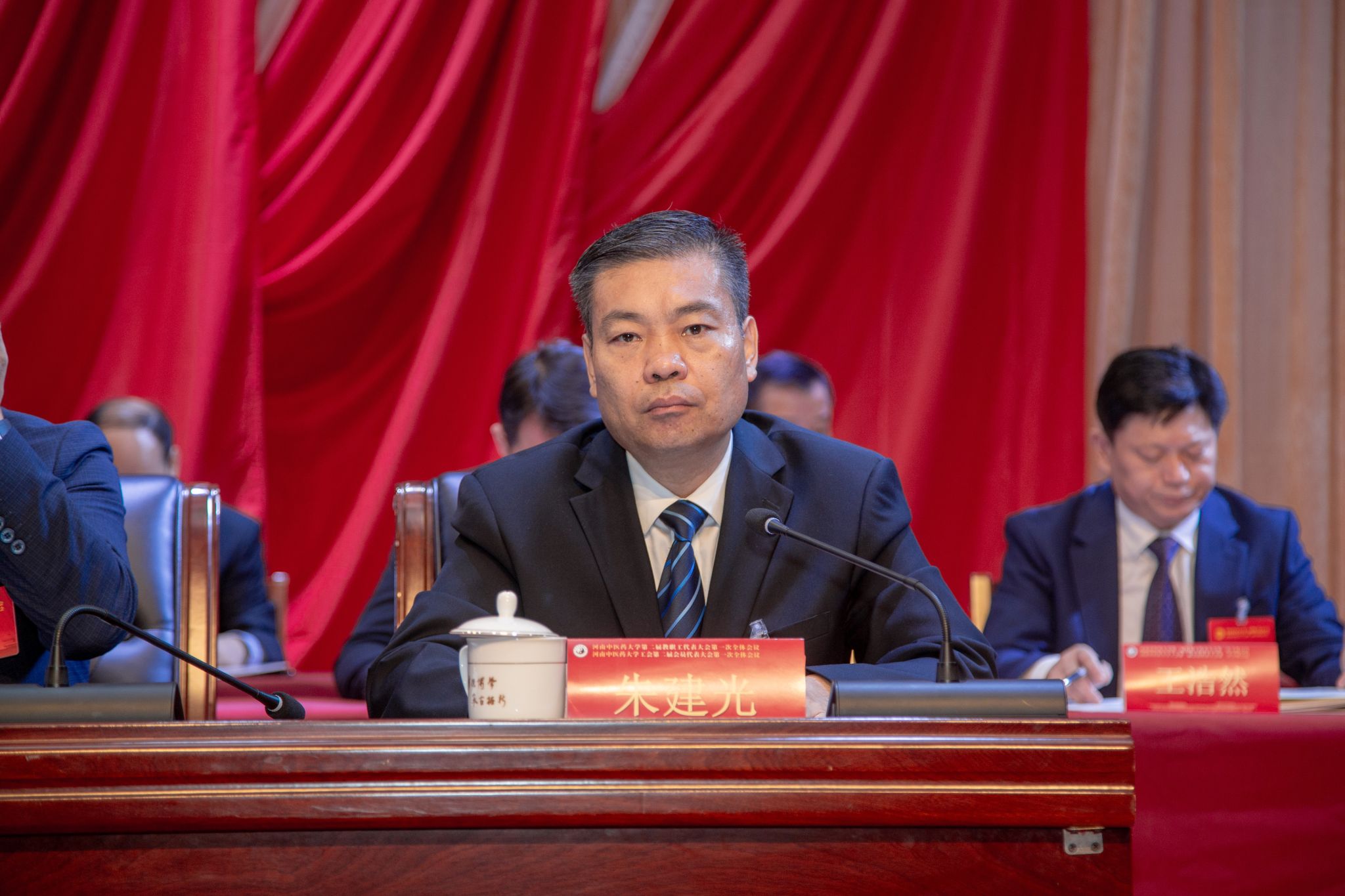 校长王耀献向大会作题为《凝聚力量谋发展 争创一流建新功》的工作报告。报告指出,第一届“双代会”以来,学校坚持以习近平新时代中国特色社会主义思想为指导,全面贯彻党的教育方针,落实立德树人根本任务,以深化综合改革为抓手,责任担当坚实有力,发展动能稳步提升,民生福祉不断增进,开创了事业发展新局面,学校向着创建一流中医药大学迈出坚实步伐。