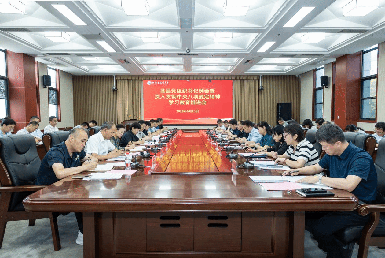 本网讯(文/刘召顺 图/吴晋一)2025年6月13日,我校在图书馆第三报告厅召开基层党组织书记例会暨深入贯彻中央八项规定精神学习教育推进会。校党委副书记、工会主席张加民,党委工作部门负责同志,各基层党委、党总支、直属党支部书记等参加会议。