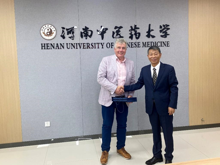 尼尔·卡迈克尔(Neil Carmichael)对中医药行业在全省的地位及我校取得的办学成果给予高度评价,他简要介绍了UCEC在促进中英文化教育交流中的定位与成果。并表示,中医药在英国乃至欧洲市场的认可度持续提升,UCEC将充分发挥资源优势,积极促成河南中医药大学与英国高校的精准合作,助力中医药文化在英落地生根。诺丁汉大学教育学院院长沃尔克·韦德金(Volker Wedekind)则聚焦高等教育国际化趋势,分享了诺丁汉大学在跨学科教育、科研合作中的经验,表达了与河南中医药大学探索中西医教育融合、人才联合培养的合作意愿。