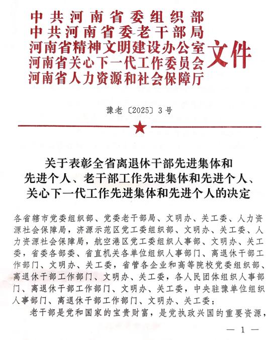 本网讯(文/图 张晨)近日,全省离退休干部先进集体和先进个人、老干部工作先进集体和先进个人、关心下一代工作先进集体和先进个人表彰名单公布,我校关心下一代工作委员会荣获“全省关心下一代工作先进集体”称号。
