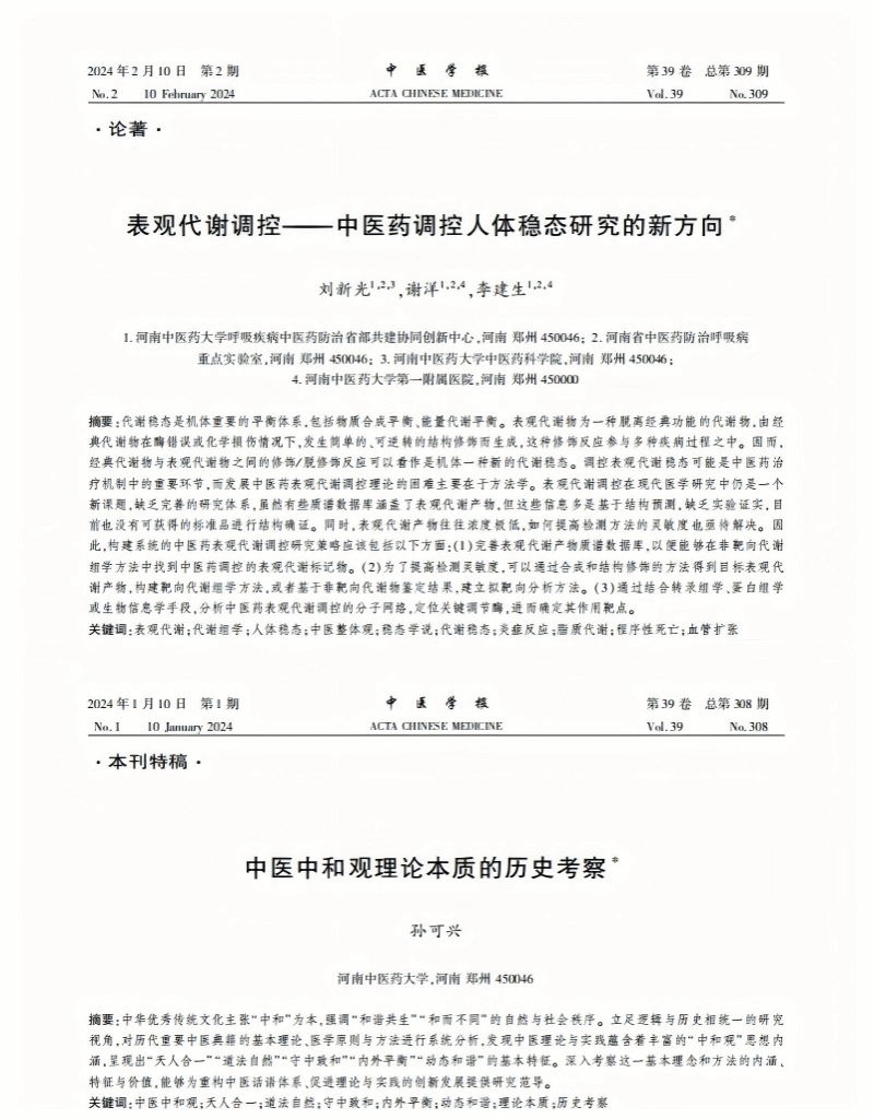 本网讯(文/图 秦小川)近日,中国科学技术信息研究所正式发布2025年度“领跑者5000——中国精品科技期刊顶尖学术论文(F5000)”入选名单。《中医学报》在2024年刊发的由李建生教授团队撰写的《表观代谢调控——中医药调控人体稳态研究的新方向》和孙可兴教授撰写的《中医中和观理论本质的历史考察》两篇论文成功入选,实现了我校学术期刊在国家级高水平论文评价体系中“零的突破”。这一重要成果,标志着我校学术期刊在创新水平、论文质量和学科影响力等方面迈上新的台阶。