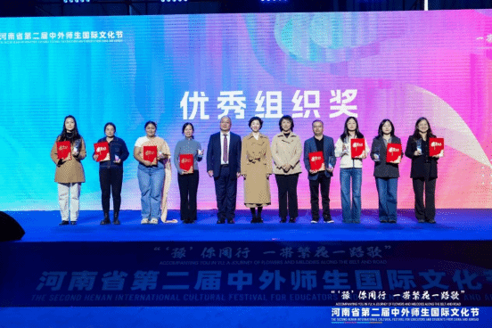 本网讯(文/图 李彦鹏)2025年10月18日,由河南省教育厅主办的河南省第二届“‘豫’你同行 一带繁花一路歌”中外师生国际文化节,在华北水利水电大学龙子湖校区成功举办。我校国际合作处、国际教育学院组织8位来华留学生代表参加此次活动并获得“优秀组织奖”。
