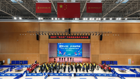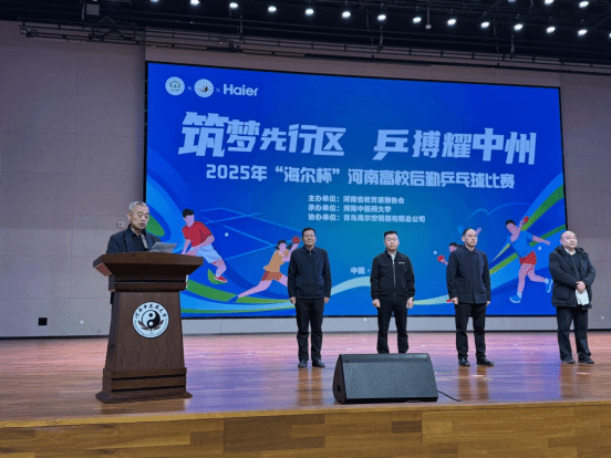 本网讯(文/李金伟 图/陈星利 王垣晓)2025年11月25日,由河南省教育后勤协会主办、河南中医药大学承办、青岛海尔空调器有限总公司冠名协办的河南省高校后勤乒乓球比赛在我校龙子湖校区体育馆隆重举行。河南省教育厅二级巡视员曹克舜,河南省教育后勤协会会长李金川,我校党委副书记、工会主席张加民,海尔智家河南分公司政企总经理刘聚鸿出席开幕式。开幕式由河南省教育后勤协会副会长冯轩友主持。