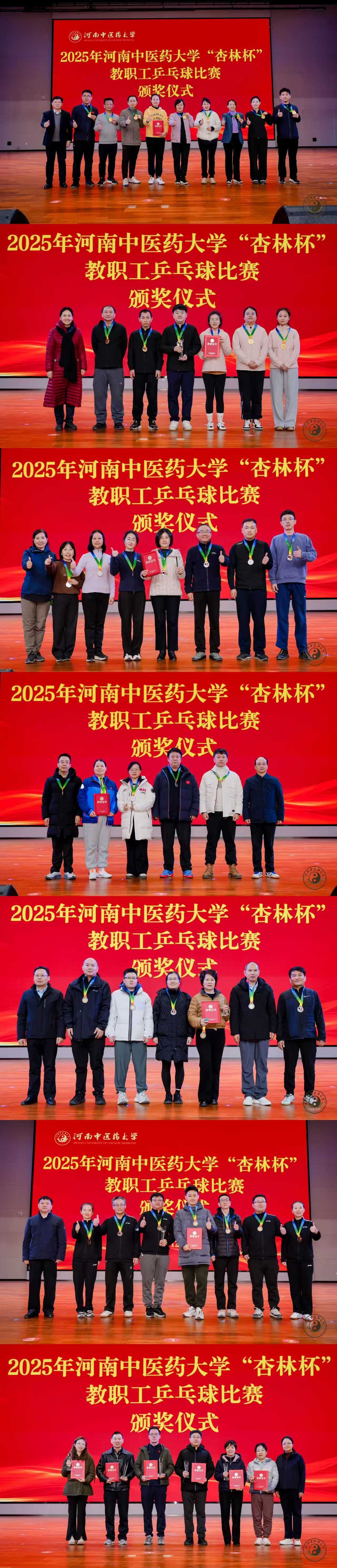 本网讯(文/图 郝怡杰)冬日暖阳映杏林,凝心聚力启新程!校工会于12月23—24日在学校体育馆隆重举办2025年“杏林杯”教职工乒乓球比赛,本次比赛由校工会主办,第二附属医院、体育健康学院、教职工乒乓球协会承办,旨在丰富教职工文体生活,增强团队凝聚力,弘扬中医药文化精神。来自全校各分工会、附院工会的17支代表队、130余名教职工报名参赛。