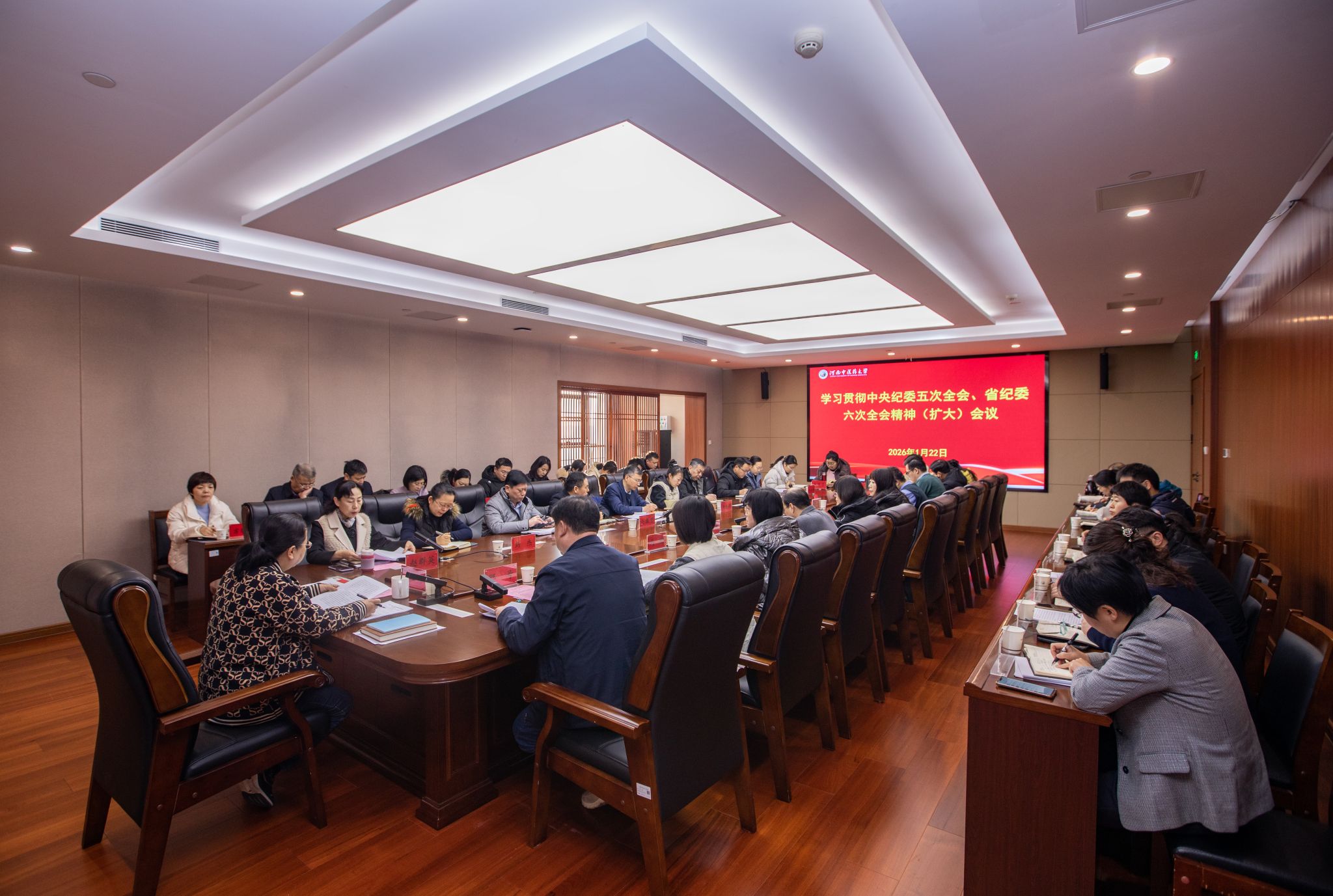 本网讯(文/邢瑶 图/吴晋一)为深入学习贯彻二十届中央纪委五次全会和十一届省纪委六次全会精神,切实把思想和行动统一到党中央决策部署上来,2026年1月22日上午,校纪委在俊学楼B605会议室召开专题学习会议。校纪委委员、基层纪委书记、党总支及直属党支部纪检员、校纪委监察专员办公室全体人员参加会议,会议由校纪委书记、监察专员马素玲主持。
