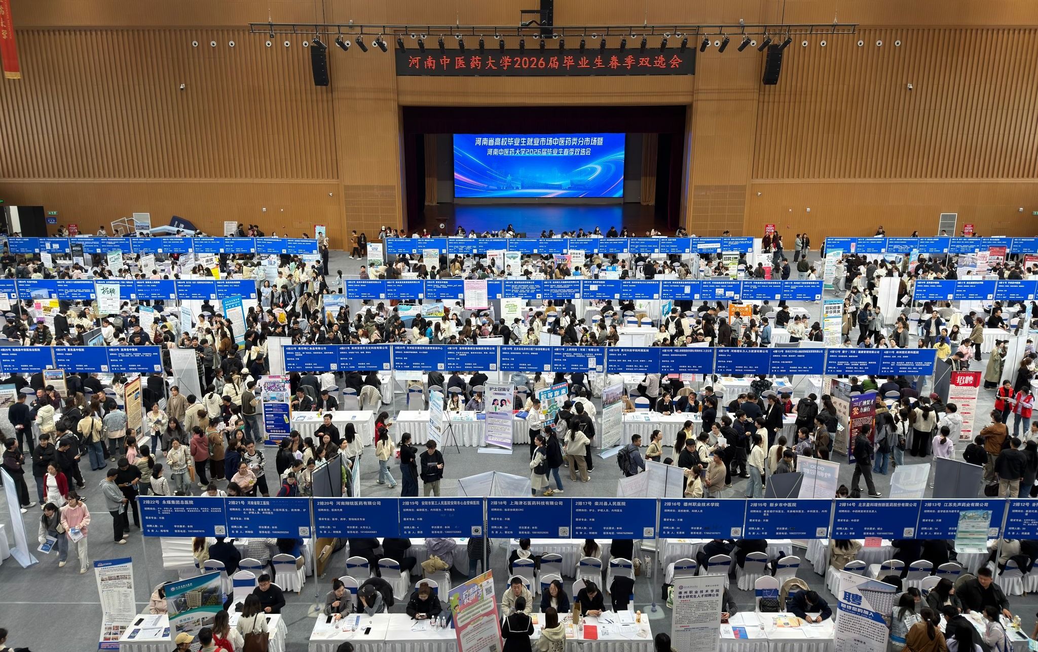 本网讯(文/孙慧娟 图/吴晋一 张迪)2026年3月28日,“豫荐未来 青春启航”河南省高校毕业生就业市场中医药类分市场暨河南中医药大学2026届毕业生春季双选会在我校龙子湖校区体育馆举行。本次双选会采用线上+线下相结合的方式,岗位设置高度契合中医药类相关专业毕业生的求职需求,为用人单位和毕业生搭建起高效便捷的对接平台。