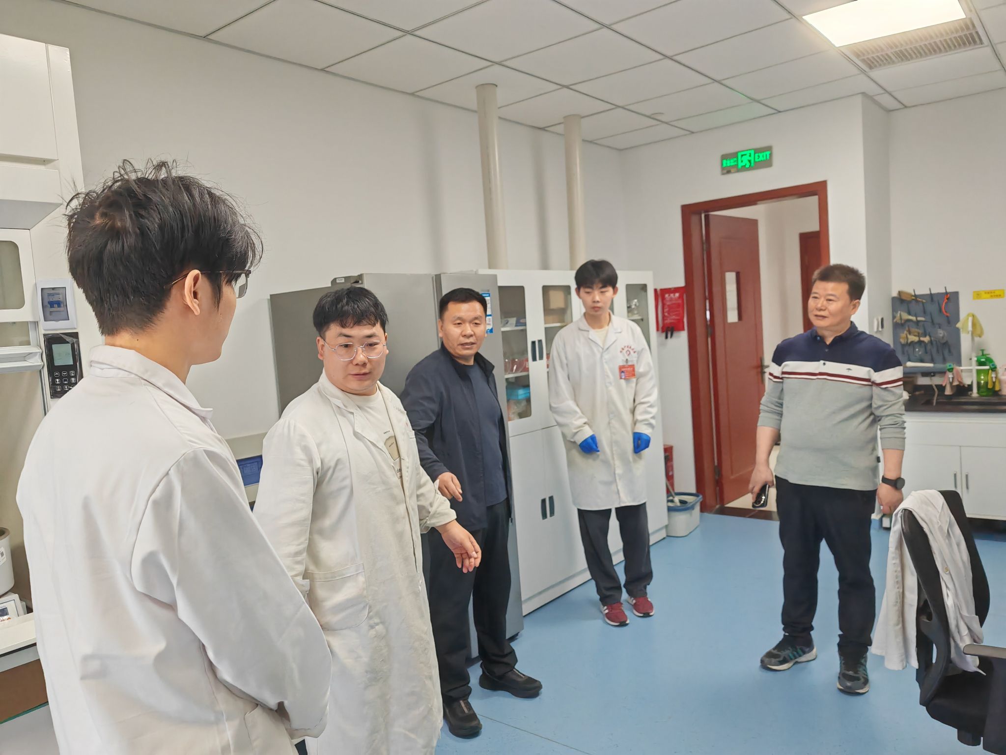 呼海涛一行实地查看了相关实验室安全管理落实情况,重点检查了实验室危险化学品存储与使用管理、高温高压设备及气体钢瓶等特种设备运行状态、消防设施配备等关键环节。针对假期安全管理工作,呼海涛强调,实验室安全是校园安全工作的重中之重,必须常抓不懈、严防死守。值班老师要严格执行值班值守制度,切实强化责任担当,加大巡查频次,确保安全排查不留死角、不漏隐患,要加强对学生的安全教育与提醒,严格落实离开实验室前“断水、断电、锁好门窗”等安全要求,从源头防范化解安全风险。