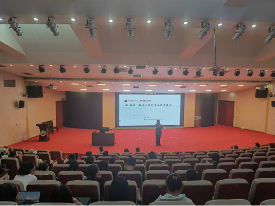 本网讯(文/图 乔永辉)为贯彻落实教育部等五部门《“人工智能+教育”行动计划》文件精神,提升我校教师利用人工智能赋能教育教学实践能力,根据学校教育数字化转型规划方案,学校教师人工智能应用首期培训于2026年4月15日举行。此次培训由教师发展中心、教务部、信息化办公室共同主办,邀请北京信息职业技术学院许琼教授为全校300余名教师带来题为《AI 驱动:教学全周期专业能力培训》的专题讲座。