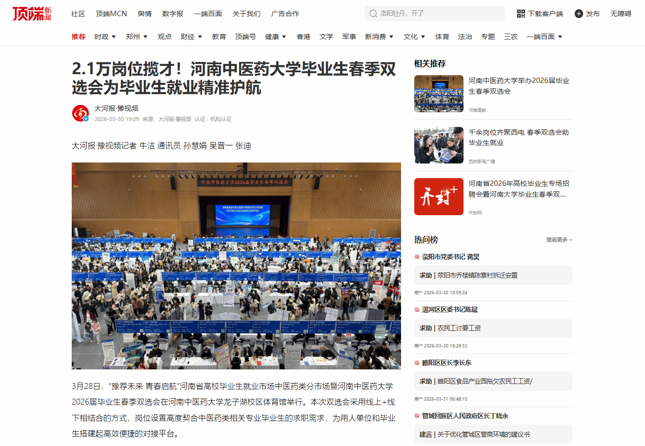 河南日报客户端等丨河南中医药大学举办2026届毕业生春季双选...