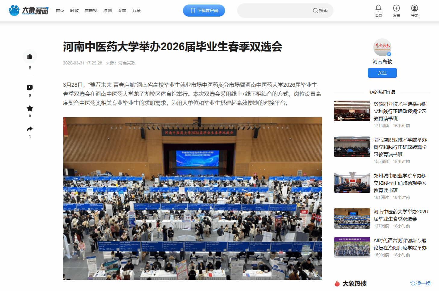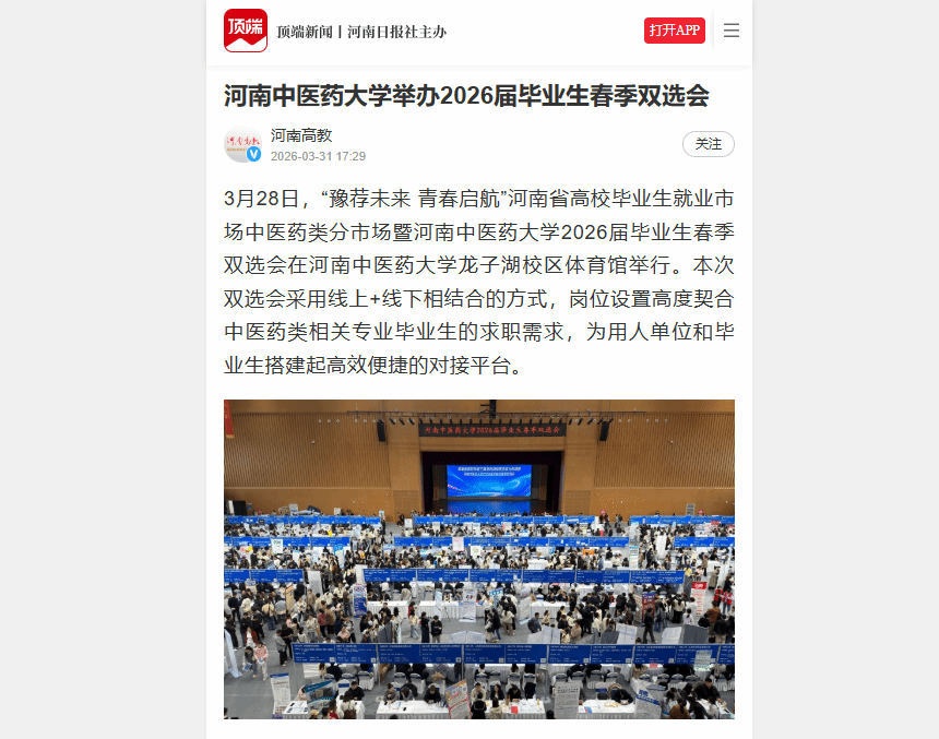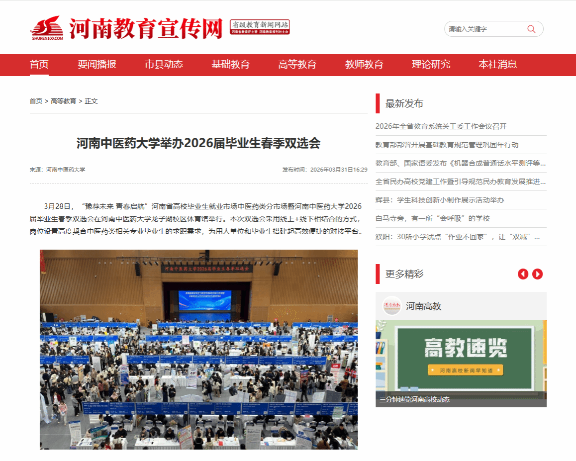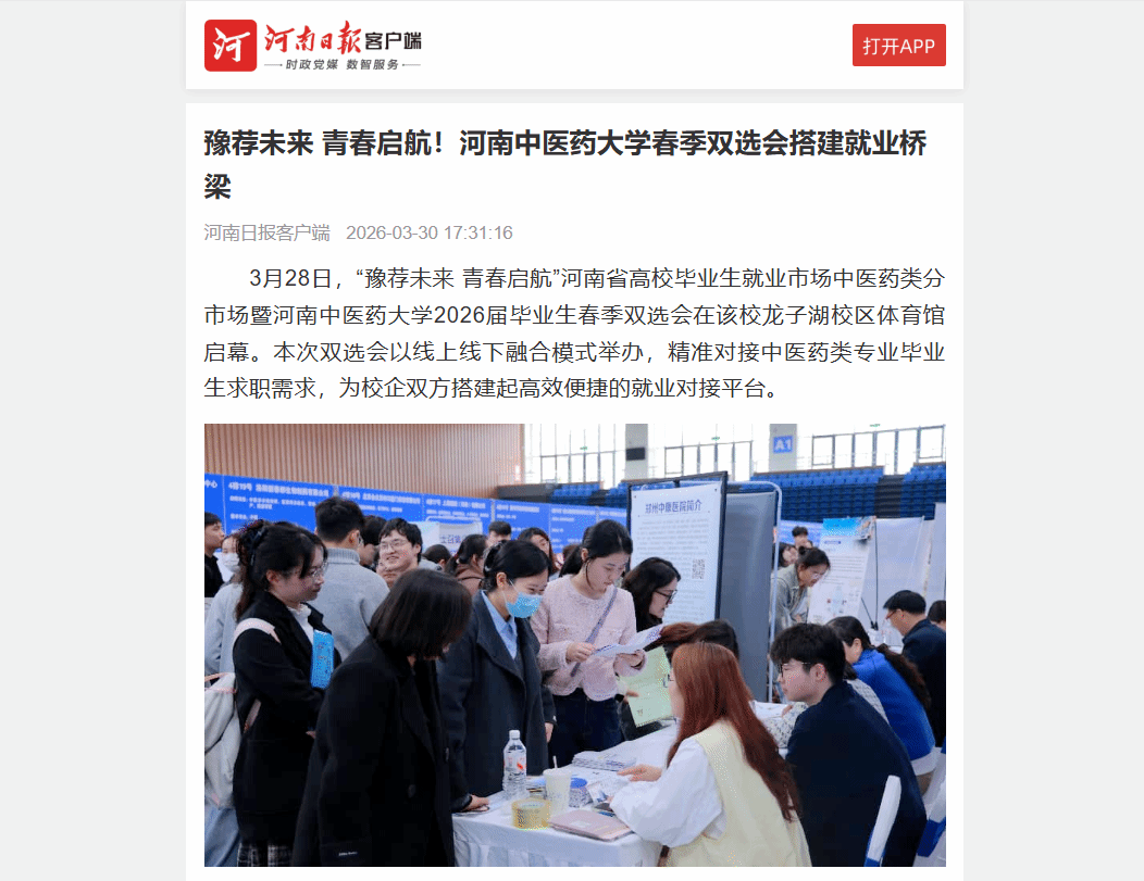 河南日报客户端等丨河南中医药大学举办2026届毕业生春季双选会
