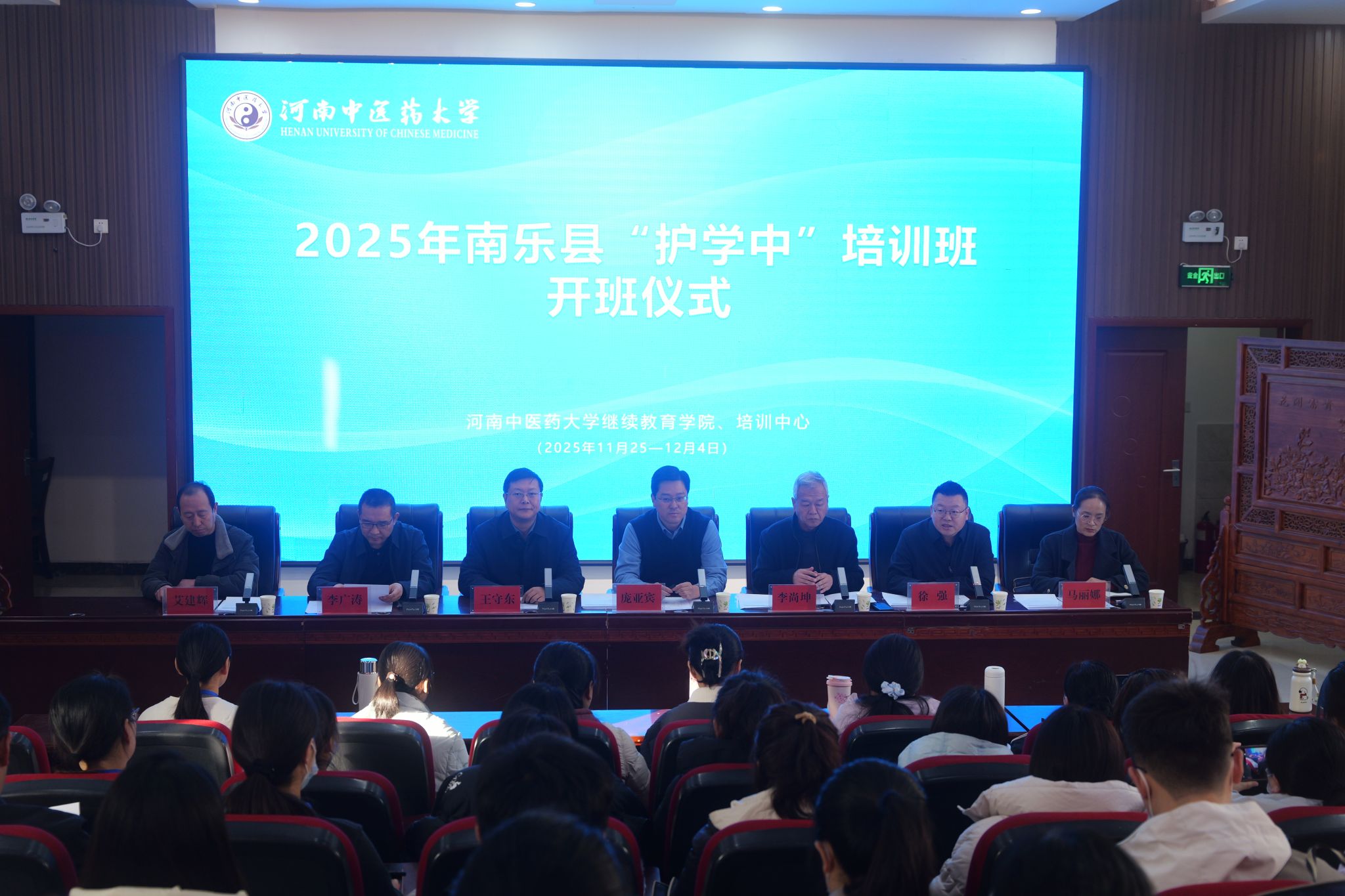 本网讯(文/图 秦倩倩)为贯彻落实《中共中央国务院关于促进中医药传承创新发展的意见》《中医药振兴发展重大工程实施方案》等文件精神,满足基层对中医护理人才的迫切需求,2025年11月25日,由濮阳市南乐县卫生健康委员会委托,我校继续教育学院、培训中心组织的“2025年南乐县‘护学中’培训班”在我校东明校区学术报告厅开班。来自南乐县16家公立医疗机构的48名护理骨干参加培训。