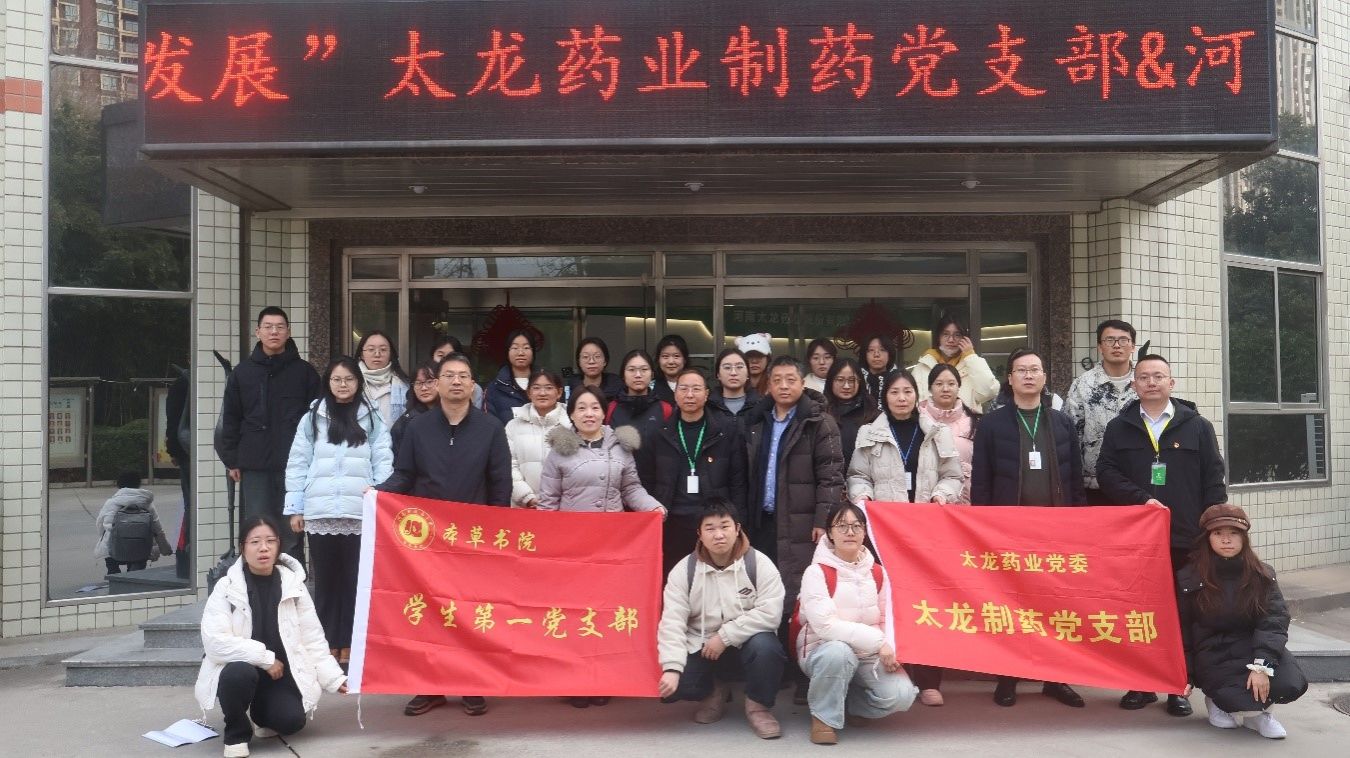 本网讯(文/武永勇 图/梅坤鹏 仝如意)为深入学习贯彻党的二十届四中全会精神,扎实推进高校党建与人才培养、行业发展深度融合,2025年12月23日,本草书院副院长高巍、本草书院学生第一党支部书记武永勇带领学生第一党支部成员前往河南太龙药业股份有限公司,联合开展“党建引领强信念,院企同心促发展”支部共建活动。河南太龙药业股份有限公司太龙制药党支部书记、事业部副总经理李江华,党支部委员徐晓丽、畅亮等企业代表出席交流活动。