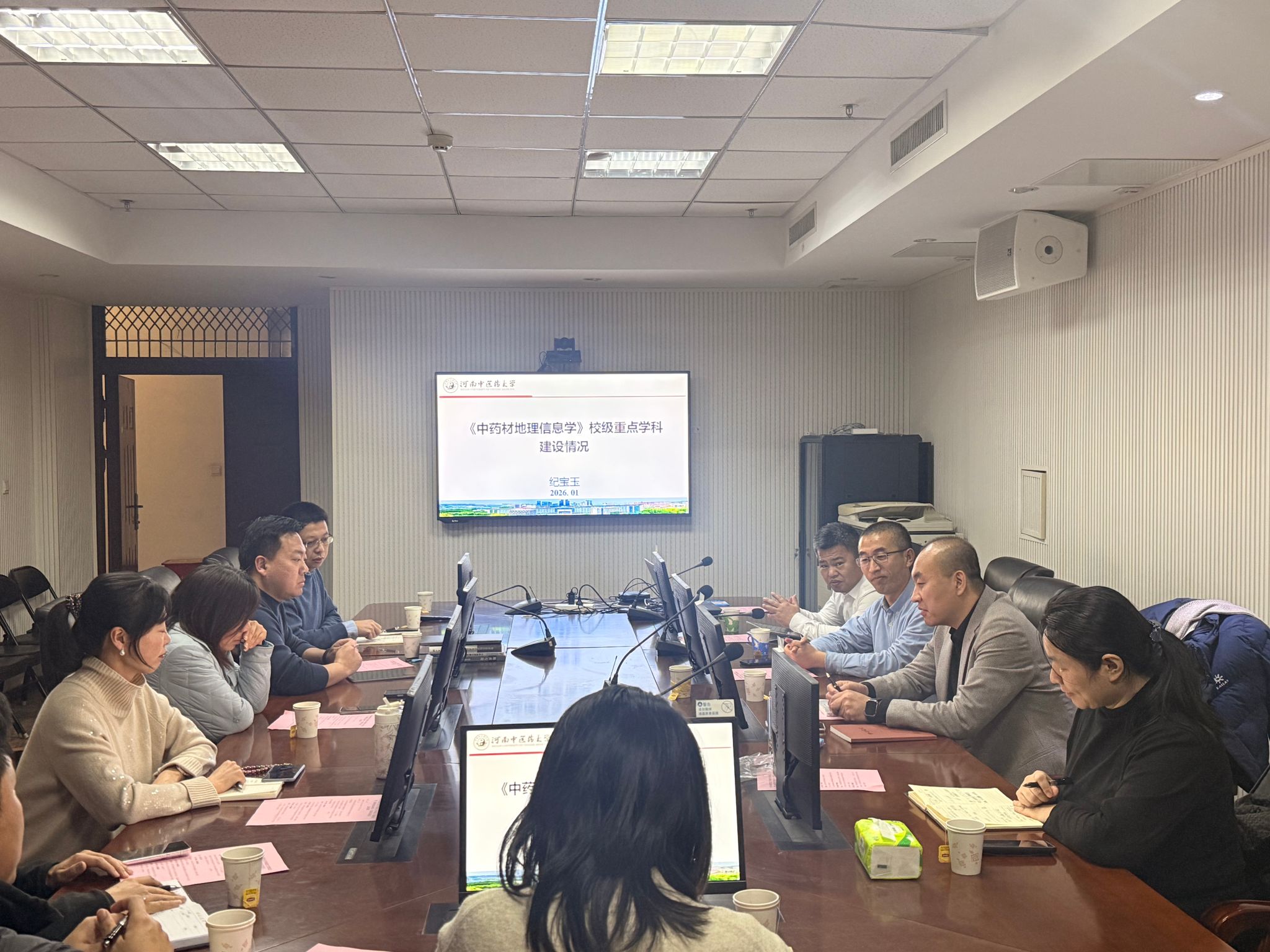 本网讯(文/图 张宝)2026年1月8日,我校在龙子湖校区教学综合实验大楼BM712室召开《中药材地理信息学》校级重点学科建设工作推进会暨《地黄药地关系研究》专著编写论证会。中国科学院地理科学与资源研究所徐成东副研究员、河南大学地理科学与工程学部副教授郭浩应邀出席指导。我校校级重点学科《中药材地理信息学》学科成员及中药资源与鉴定学科方向研究生参加会议。会议由药学院副院长方晓艳教授主持。
