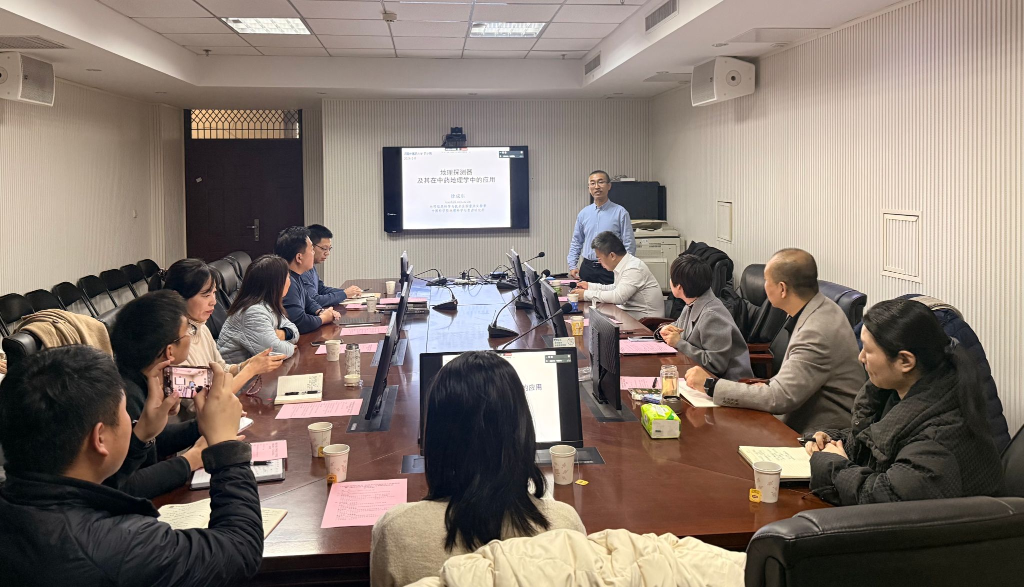 《中药材地理信息学》学科方向带头人、学科秘书张宝博士详细汇报了《地黄药地关系研究》专著的编写背景、核心数据基础、研究框架与初步成果。与会专家对专著选题的学术价值与实践意义予以高度认可,并就数据深度挖掘、理论体系构建、章节逻辑优化等方面提出了具体修改与完善建议,为专著的后续高质量编撰奠定了坚实基础。