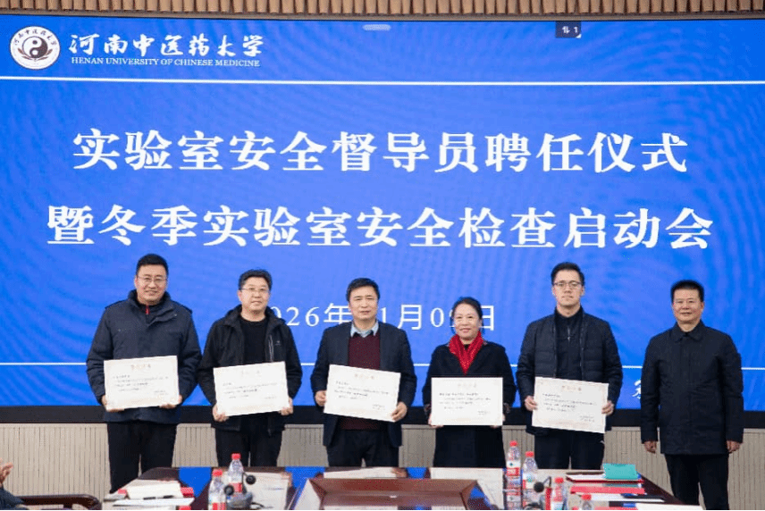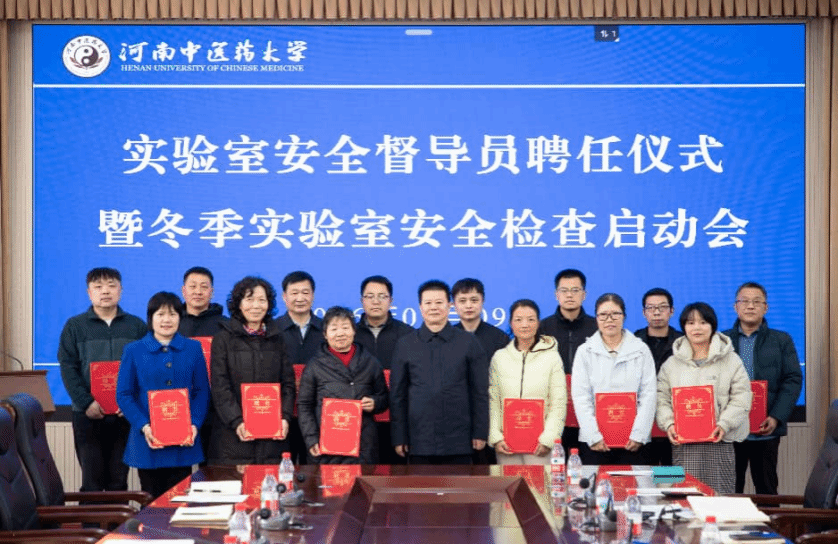 呼海涛为新聘任的实验室安全督导员颁发聘书,并为荣获我校2025年度实验室安全宣传月“优秀组织奖”的中医学院(仲景学院)、仲景书院,医学院,康复医学院,体育健康学院,中医药科学院等单位颁发奖状。国有资产管理处副处长蔡源源宣读《学校冬季实验室安全检查方案》,对检查范围、实施步骤、工作要求及分组情况等作部署。