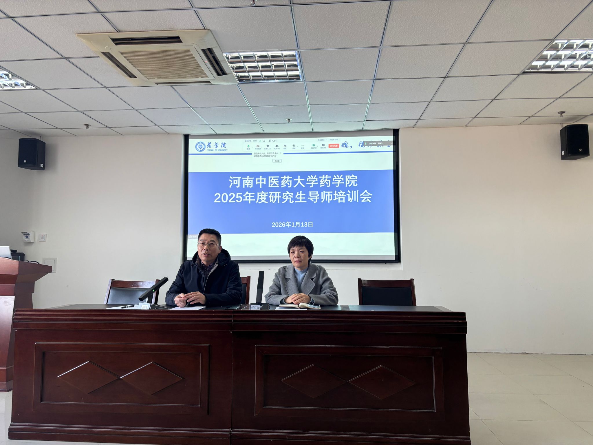 本网讯(文/图 王瑞生)为进一步规范研究生培养流程,强化导师育人责任,提升研究生培养质量,2026年1月13日,药学院2025年度研究生导师培训在龙子湖校区教学实验综合楼BN617顺利召开。学院研究生管理人员、全体研究生导师、行业导师参加本次培训。