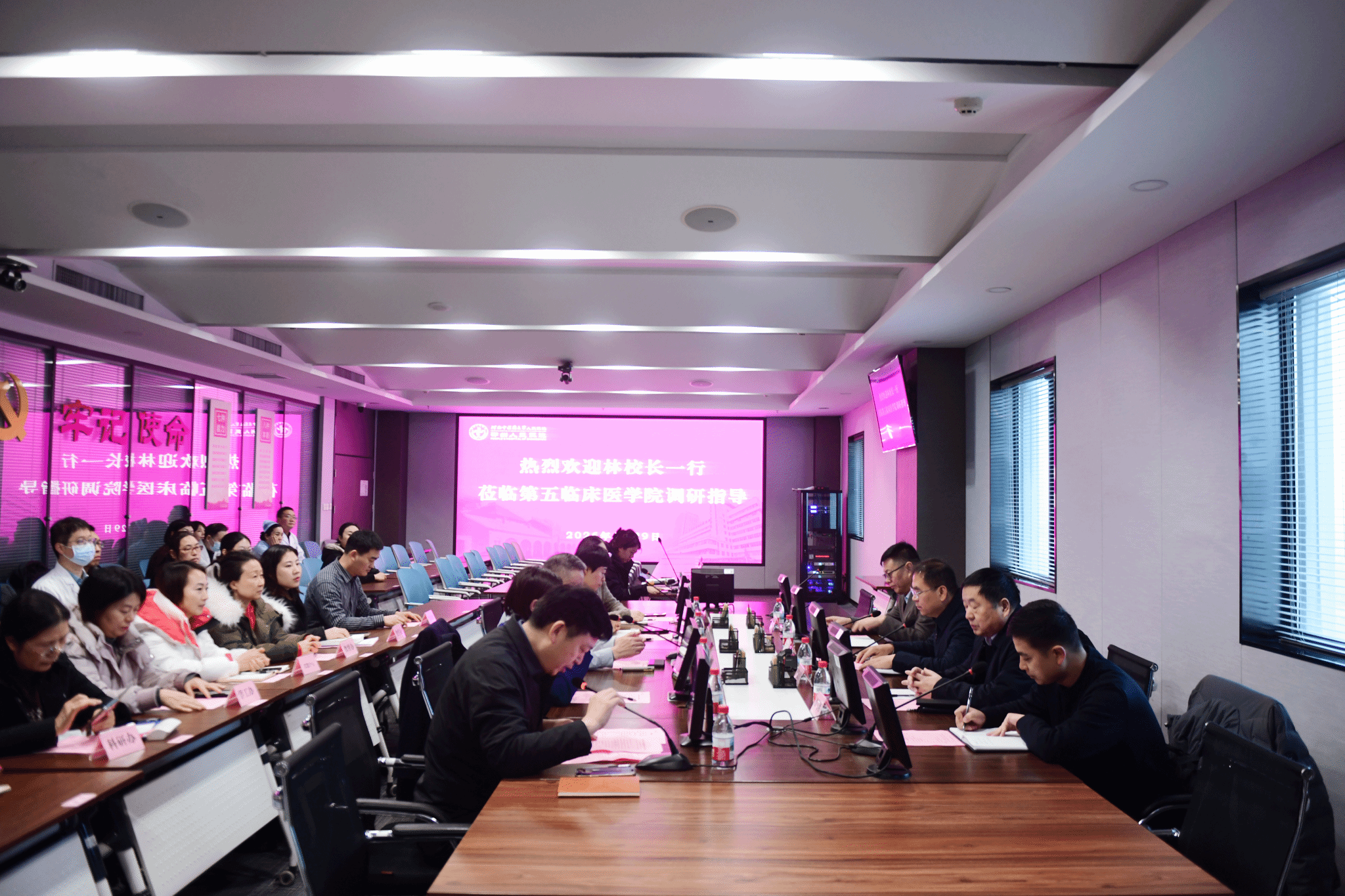 本网讯(文/秦竞存 图/孙芸昊)2026年1月29日,副校长林俊堂到第五临床医学院调研指导,研究生院常务副院长陈随清、国际合作处处长兼国际教育学院院长朱剑飞等随同调研。第五临床医学院领导班子成员,职能部室负责人,教研室主任、秘书及骨干教师代表参加调研汇报会,会议由学院副院长田明波主持。