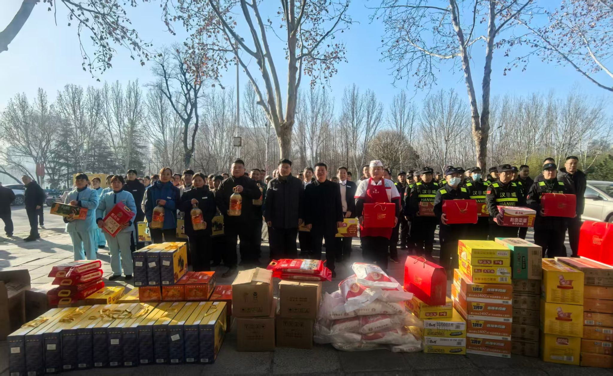 在龙子湖校区,赵焕东、呼海涛与大家亲切交流,并代表学校党委向大家送上新春祝福,感谢大家的辛勤付出,对各位“舍小家、为大家”的奉献精神表示敬意。希望大家继续用责任与坚守守护校园安全,用实干与奉献保障服务不断档,全力做好假期期间校园服务保障和安全稳定,让全体师生度过一个安定祥和的新春佳节。