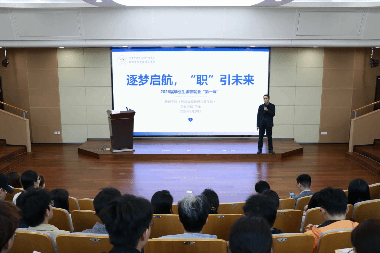 本网讯(文/崔嫣冰 王嘉煜 图/学生会摄影部)2026年3月28日,护理学院(智慧康养护理行业学院)在俊学楼A114举办2026届毕业生就业指导系列活动,通过形势分析、政策解读、经验分享与岗位对接,助力毕业生明晰方向、主动求职。学院党委书记牛乐、院长秦元梅、毕业班辅导员及近200名毕业生参加,活动由学院学工办主任谭亚男主持。