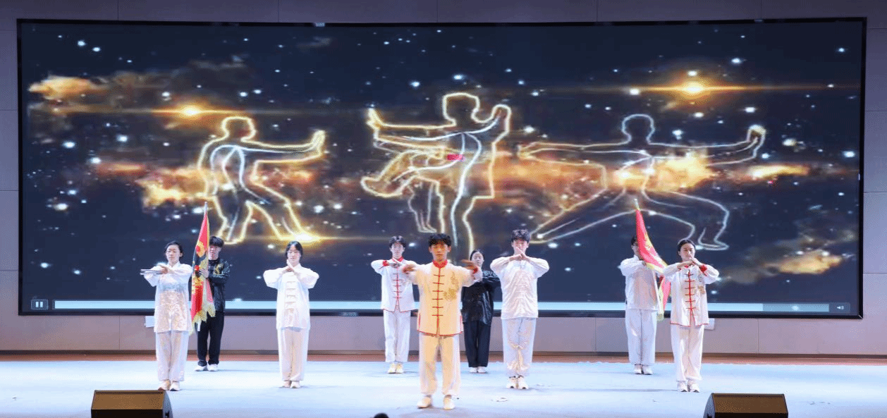随后,艺术成果展如约而至,第一篇章《启智铸魂·舞姿翩跹》中,同学们以灵动的舞姿展露出生机之美与经络之美;第二篇章《知行润心·文武趣谈》中,功法武术刚柔并济,市井烟火温馨和睦,同学们在拳脚功夫和俗世安然中尽显功法之美与中医之美;第三篇章《崇德砺行·雅乐承礼》围绕音韵、礼仪、朗诵之美展开,以艺术形式演绎经典名篇,展现“青衿”学子的精神风貌与青春理想,呼应美育育人的主题。