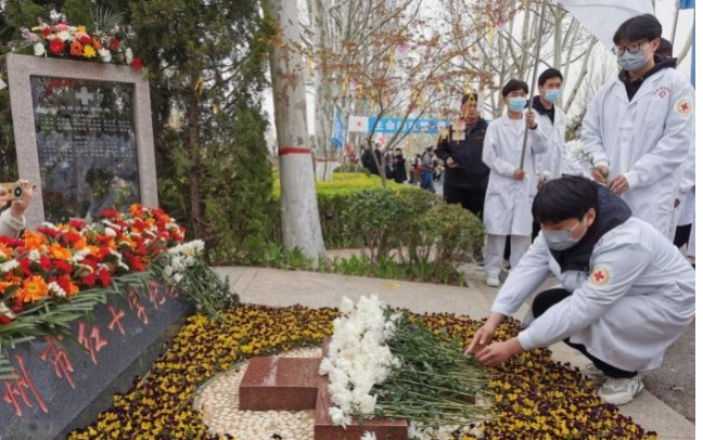 本网讯(文图/ 董敏)2023年3月24日,由郑州市红十字会主办的“遇见·生命”2023年遗体、器官(角膜)捐献缅怀纪念活动在河南“福寿园红十字纪念碑”举行。我校医学院部分师生、捐献者家属、志愿者、社会各界人士代表等200余人来到现场默哀献花,表达对捐献者崇高的敬意和悼念之情。
