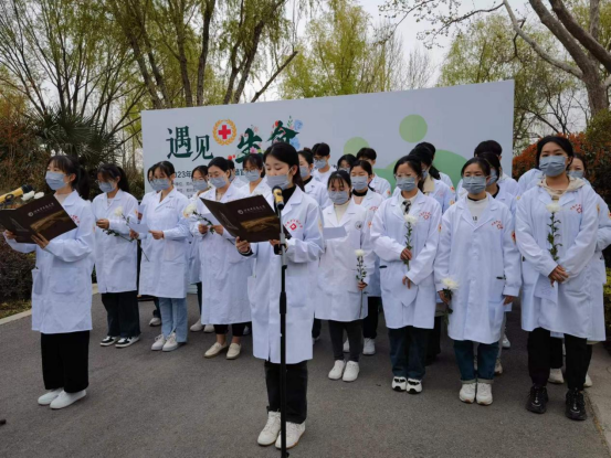 活动现场,我校医学院学生代表深情朗诵诗歌《生命》:“你虽无名可记……以血肉之躯,供医者学习……愿逝者长安息,我以革命人道主义,救死扶伤,竭诚尽智,敬爱人命成为杏林佳医”。