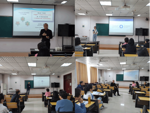 本网讯(文/刘庆普 图/朱鑫)4月18日,药学院在BS106示教室举办了以“推动双语教学,夯实人才质量”为主题的教学名师工作坊研讨活动。本次活动特邀河南省高等学校教学名师纪宝玉、仲景教学名师方晓艳,仲景青年教学名师王利丽、刘亚敏,河南省教学标兵曾岱及河南省首批课程思政样板课程负责人朱鑫到会研讨和点评。