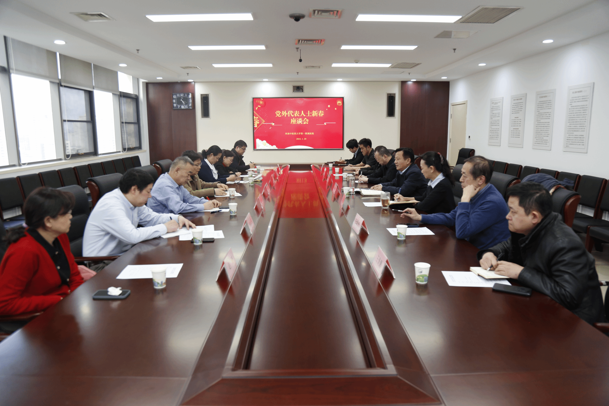 本网讯(文/梁楠 图/赵庆庆)为进一步统一思想,凝聚共识,2024年1月29日,一附院组织召开2024年统战工作座谈会。医院党委书记翟剑波、党委副书记张婉红与各民主党派、无党派代表人士欢聚一堂,总结成绩,听取建议,畅叙友情,共话发展。座谈会由张婉红主持。