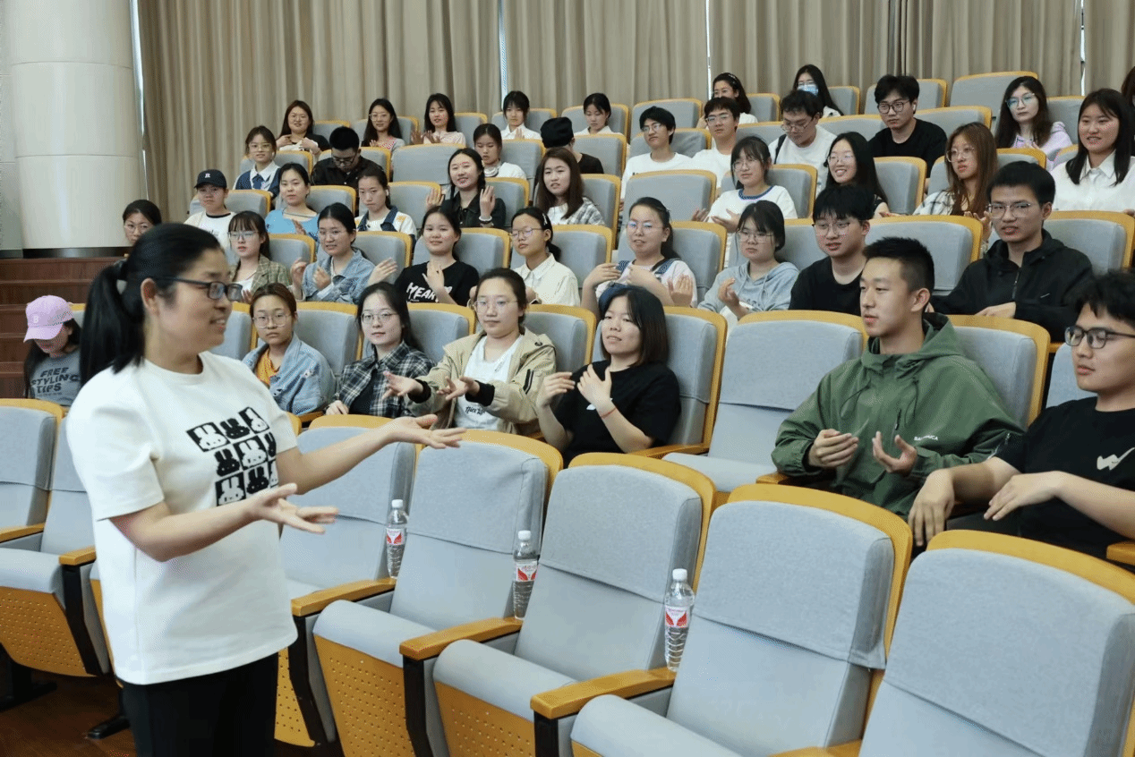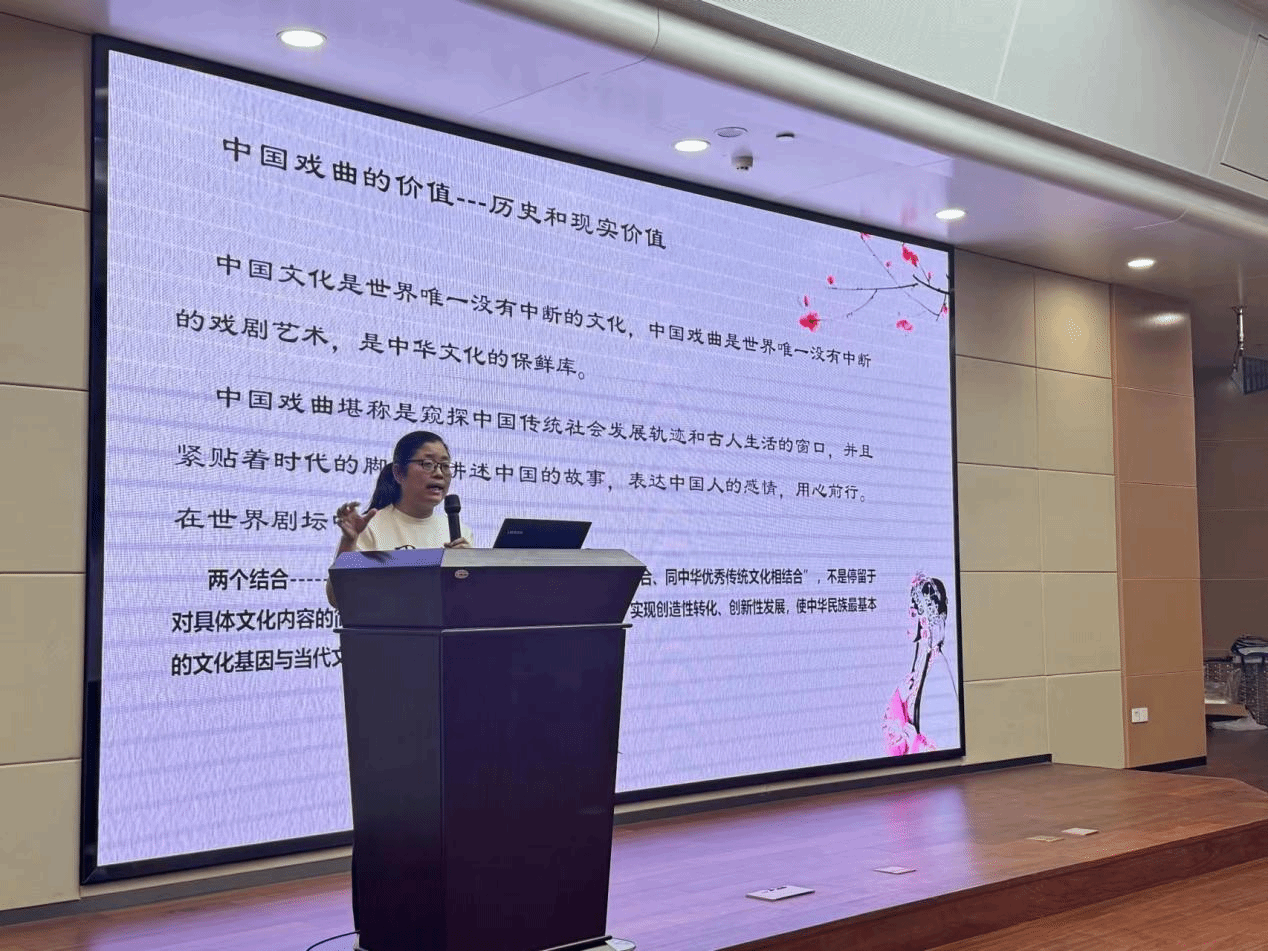 讲座现场,朱老师从流行歌曲讲到戏曲手势,由古典舞蹈引申至戏曲做打,通过精湛的演技和生动的讲解,向学生们展示了戏曲艺术的独特魅力。她还详细介绍了戏曲的历史渊源、表演技巧、角色行当等方面的知识,让学生们对戏曲艺术有了更加深入的了解。此外,讲座还设置了互动环节,让学生们亲身参与戏曲表演。同学们在朱老师的指导下,学习了戏曲中简单的动作;在戏曲社团社员的示范下,了解了戏曲中马鞭对应动作的含义,使同学们感受到了戏曲艺术的独特魅力。同时,讲座还通过多媒体展示,向学生们展示了戏曲艺术的经典剧目和表演片段,进一步使同学们了解经典。这种互动体验让学生们更加深入地理解了戏曲艺术的内涵,也让他们对戏曲产生了浓厚的兴趣。