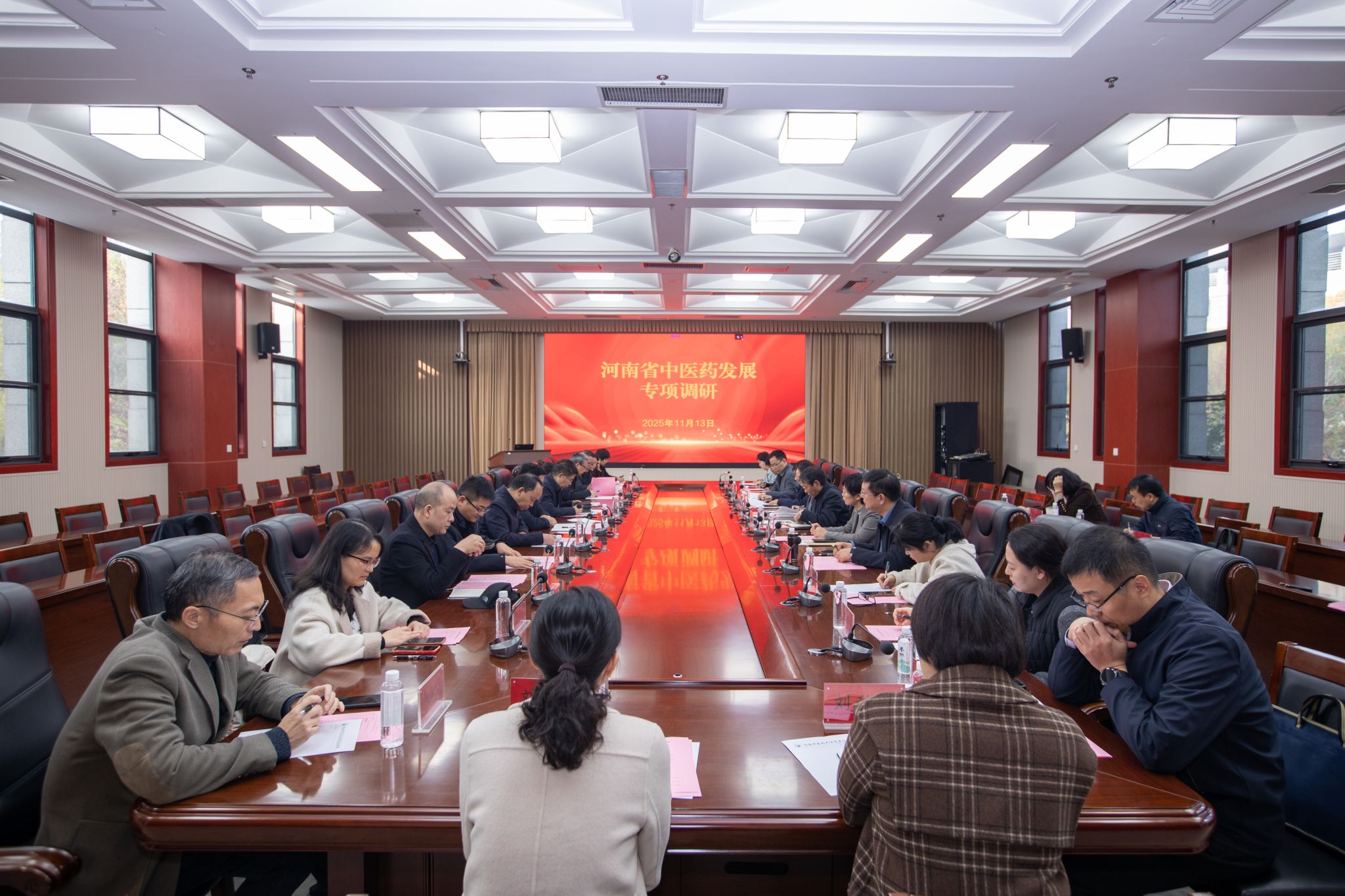 本网讯(文/贾姝 图/吴晋一)2025年11月13日,河南省中医药发展专项调研会在我校图书馆第三报告厅举行。调研组成员,河南省卫健委中医药发展处监察员刘晓天、河南省工业和信息化厅生物医药处一级调研员王光华、河南省农业农村厅中药材产业专家团办公室主任郝学政等一行12人,与我校党委宣传部、科研负责人、项目带头人、技术转移办公室人员等有关工作负责人、专家、教授齐聚一堂,聚焦中药制剂、药膳和大健康产品、中医药相关医疗器械三大领域,共商河南省中医药产业发展现状,破解关键瓶颈,推动河南省中药质量提升与中医药产业高质量发展。我校副校长张振强出席会议。科学技术处处长王永霞主持会议。