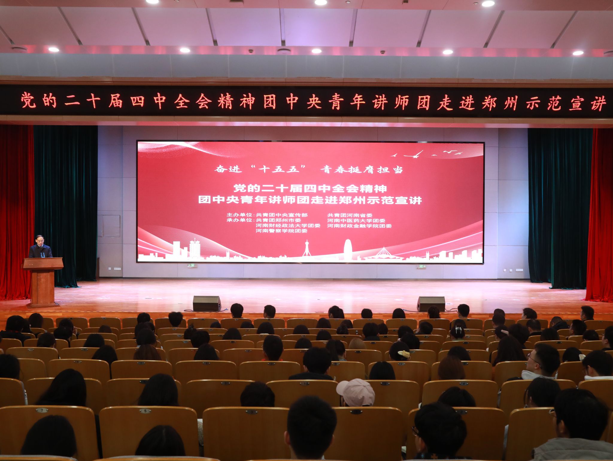 本网讯(文/古豫蕾 图/大学生新媒体中心)近日,“奋进十五五,青春挺膺担当”党的二十届四中全会精神团中央青年讲师团走进郑州示范宣讲活动在我校举行,来自河南财经政法大学、河南财经金融学院、河南警察学院及郑州市新兴领域青年代表与我校师生共同参与活动。