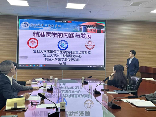 在讲座中,马端详细介绍了精准医学在诊断、治疗和预防方面的应用,并强调了基因检测的重要性。马端分享了研究团队在精准医学领域的研究进展——开发了人工智能遗传分析咨询系统,该系统可以帮助医生进行基因诊断、个性化用药和遗传咨询。在交流环节,马端与在场的教师进行了互动交流,就精准医学与中医药结合的可能性进行了探讨。