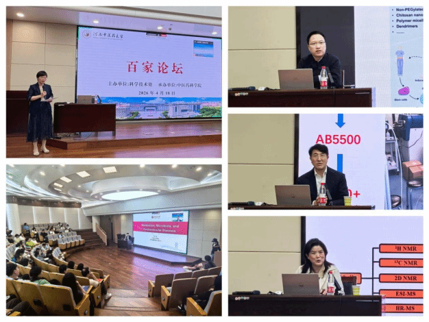 本网讯(文/图 张蓝熙)2026年4月18日,由科学技术处主办,中医药科学院承办的“百家论坛”在俊学楼A114学术报告厅举行。北京中医药大学东直门医院王勇教授、北京大学郑乐民教授、吉林省中医药科学院徐雅娟教授应邀分别以《以临床问题为导向的中医药复方新药研发与机制研究》《代谢、微生物群与心血管疾病研究》《治疗脑梗死新药开发研究》为题作专题讲座,我校150余名师生参加。中医药科学院执行院长冯素香主持讲座。