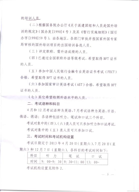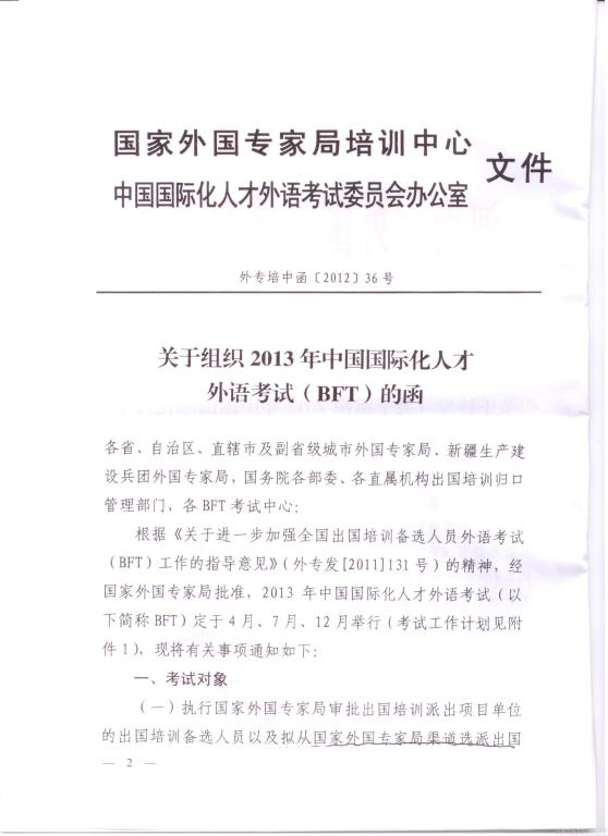 现将河南省外国专家局关于转发《关于组织2013年中国国际化人才外语考试(BFT)的函》的通知予以转发,请相关人员积极报名参加。