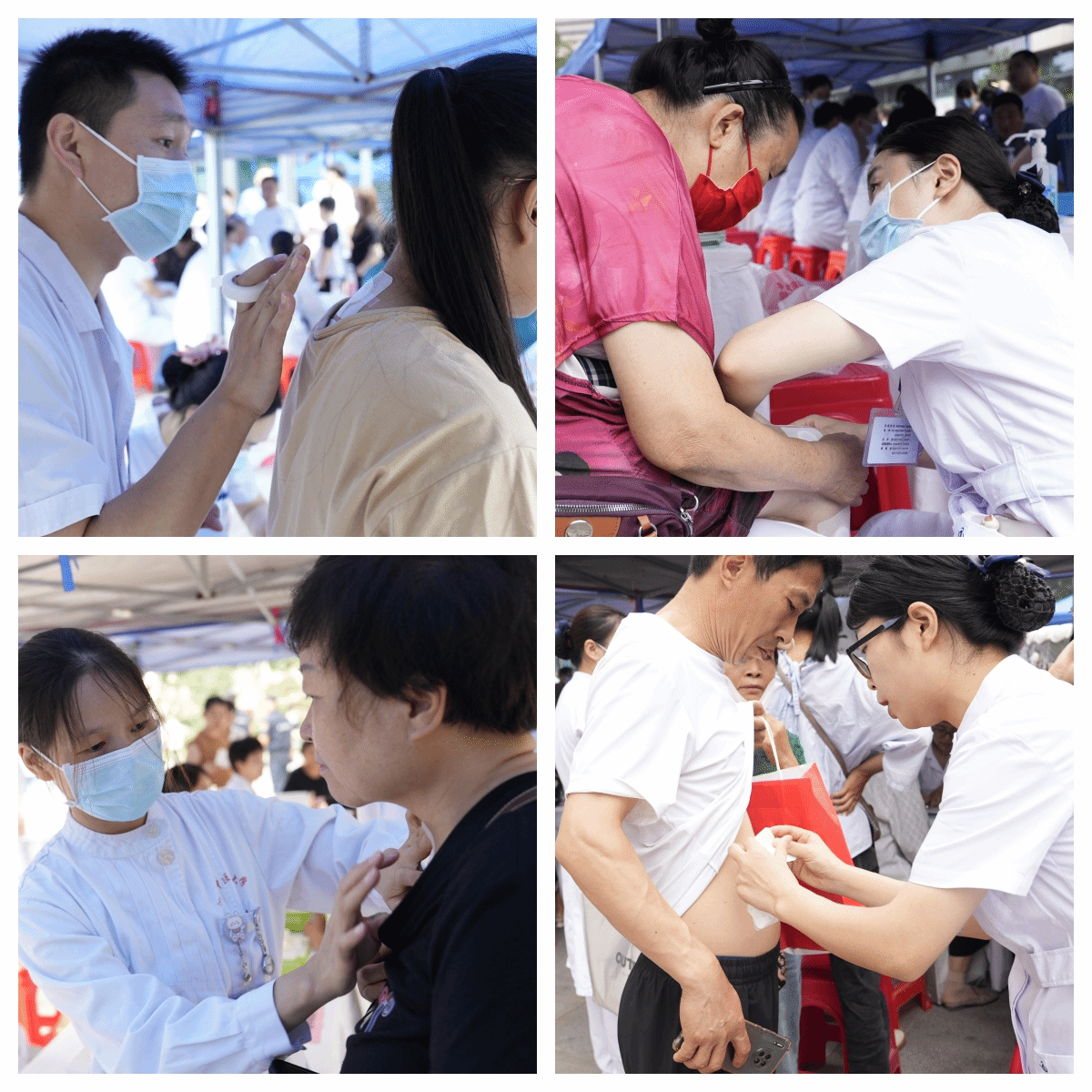 现场来自于24个科室60余位医务人员开展了穴位贴敷、针刺、灸法等丰富多彩的冬病夏治项目,满足患者多元化的健康保健需求。益阳灸、益元灸……医护人员耐心细致询问参与者的感受,并辨证调整治疗方案,确保参与者都能获得最佳的治疗效果。尽管天空飘着小雨,但群众的参与热情丝毫未减,大家纷纷表示通过这次体验,不仅学到了很多有用的中医养生知识,还亲身体会到了中医药的魅力。