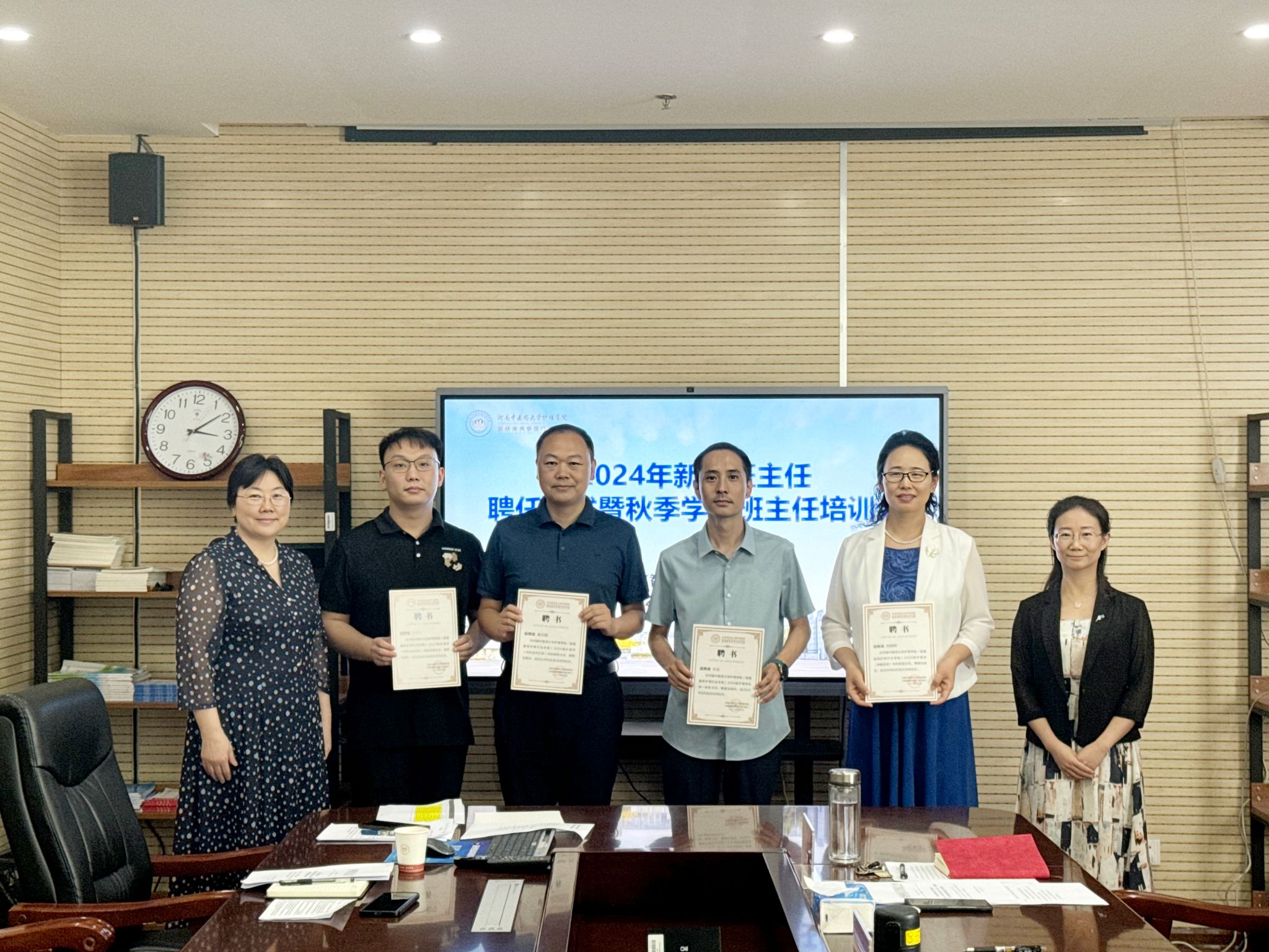 会议伊始,学院学工办主任谭亚男宣读班主任选聘流程及聘任结果。院长秦元梅为新聘班主任颁发聘书并合影留念。新聘班主任代表靳贺心表态发言,表示将从加强沟通联系、关注学业指导、促进学生全面发展等方面发力,用心用情做好班主任工作。