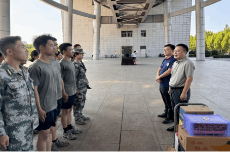 李伟峰代表学院向承训教官表示了问候和感谢,肯定了同学们在军训中敢于吃苦、坚韧不拔的意志。随后,院领导一行等为不畏烈日、不辞辛苦的承训教官发放了慰问品,并表示军训是同学们在大学阶段重要一课,希望教官们严格纪律、加强训练,通过军训不断提升新生的综合素质,展示出康复医学院良好的精神风貌,同时希望新生尽快适应大学生活,将军训中淬炼的优良品质融入到今后的学习生活中。