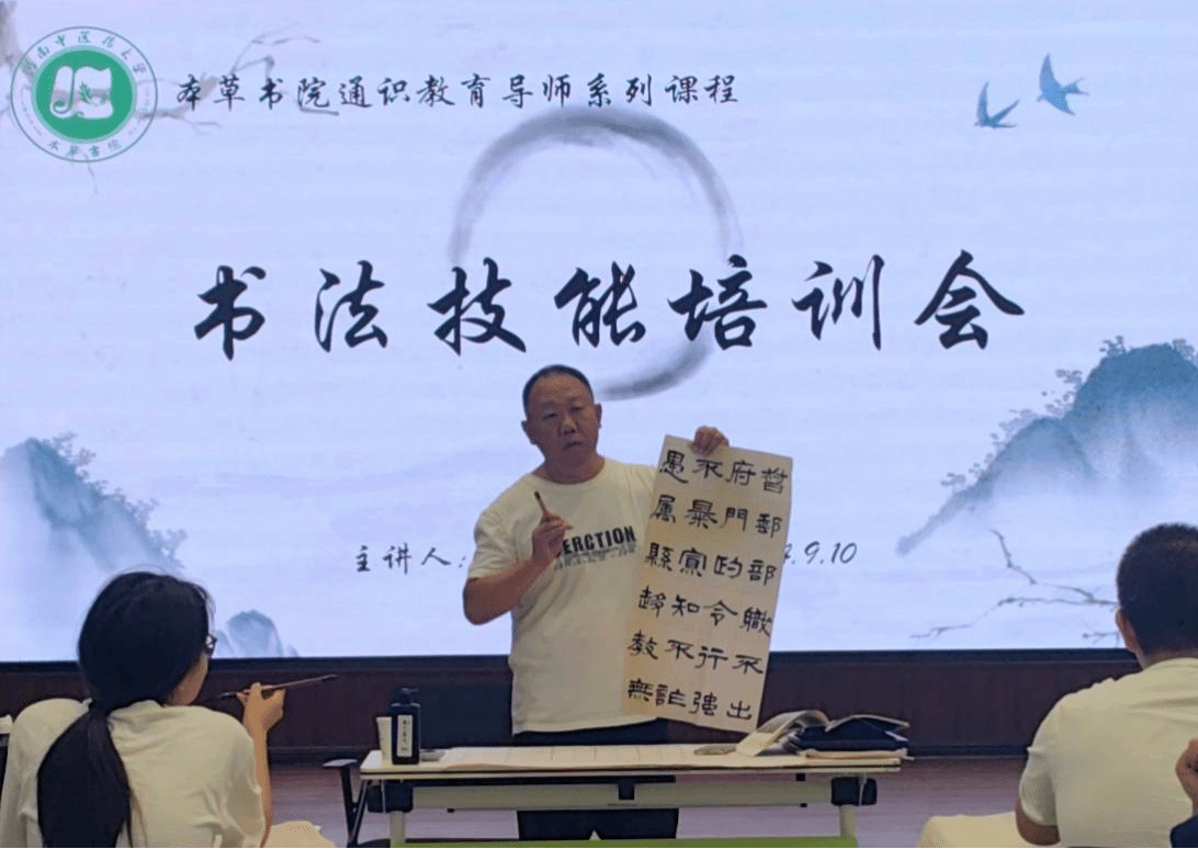 本网讯(文/王艺凝 孙碧莹 图/韩涵)为弘扬中华优秀传统文化,传承书法艺术,加深同学们对传统文化的理解和认同,2024年9月10日,本草书院邀请河南省书法家协会会员、本草书院通识教育导师陈东坡老师在远志学堂举办第二期书法技能培训课,50余名师生参加活动。