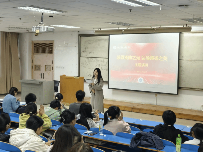 本网讯(文/王心慧 时润泽 图/李鑫浩 黄翔堃)为深入贯彻落实党的二十届三中全会精神,进一步提高医学院学子对国家资助政策的了解和认识,增强学子们的感恩意识,营造风清气正的资助育人氛围,2024年11月12日,由医学院主办的“感恩资助之光,弘扬善德之美”感恩主题演讲比赛在综合教学实验楼A334教室拉开帷幕。本次比赛共有9位优秀选手参赛,医学院分团委书记戴冰星、学工办副主任左倩、医学院辅导员王鸿飞、尼丽柯、李世宇、时润泽和学生代表韩顼担任评委嘉宾,精诚社区200余名学生观众参加。