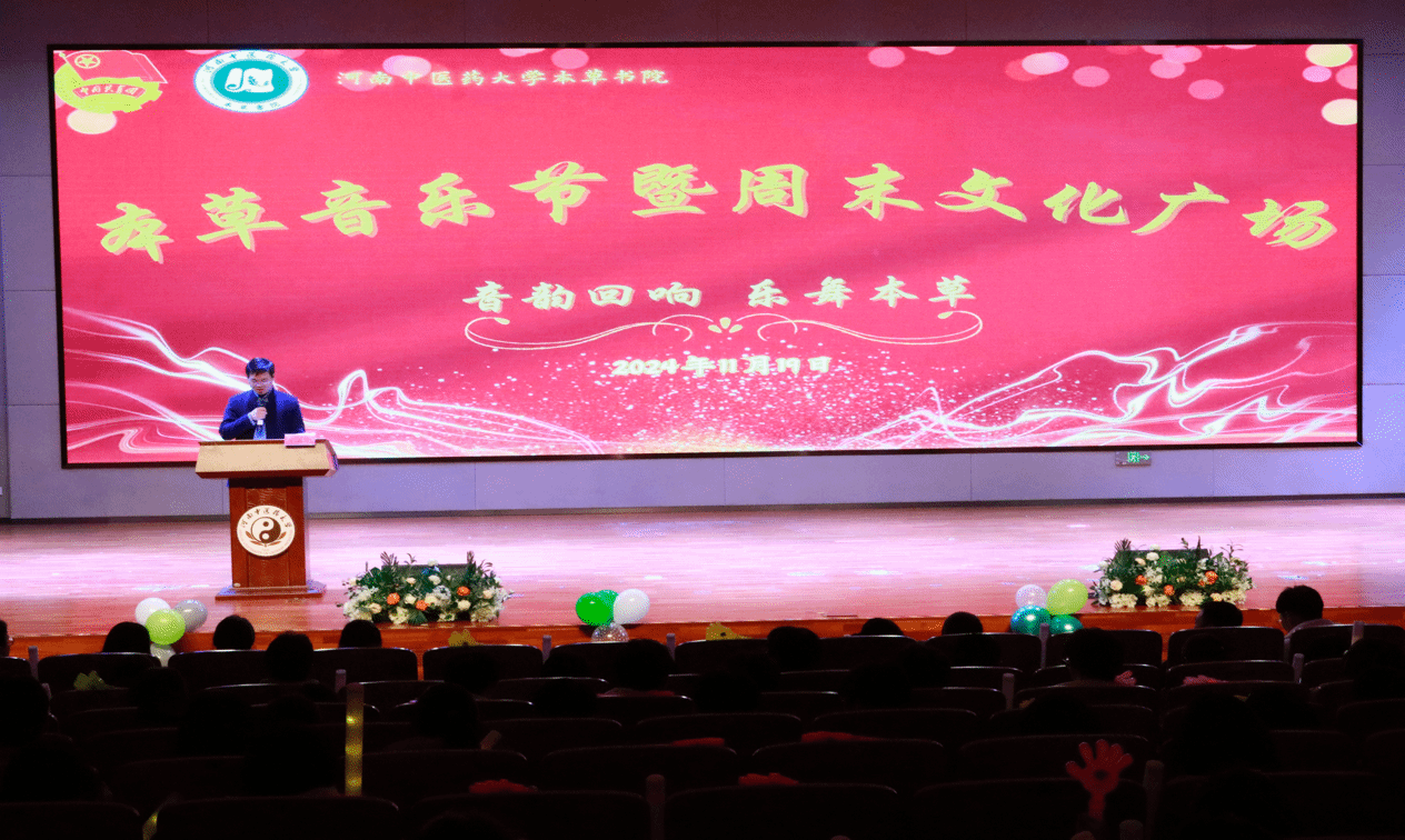 本网讯(文/毛辛飞 图/李笑笑)为丰富校园文化生活,展现当代大学生的青春风采,2024年11月19日,本草书院在龙子湖校区俊学楼B101举办“音韵回响,乐舞本草”本草音乐节暨周末文化广场活动。校团委副书记郭薇,本草书院党委副书记邢瑶、副院长张文举、全体育人导师,中医学院、药学院、马克思主义学院、管理科大联合学院辅导员,以及本草书院2023级、2024级学生合计500余人齐聚一堂,共同观赏此次音乐节。
