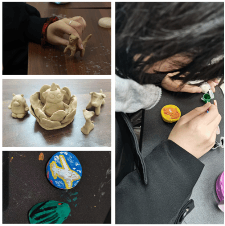 在讲座中,孟老师诙谐幽默的讲授方式,使得整个讲座变得灵动有趣。老师以其深厚的专业知识和丰富的实践经验,为在场同学带来了一场精彩纷呈的文化盛宴。同学们认真学习,积极回答问题,在制作泥玩具过程中发挥自己的想象力和创造力,制作出了一个个生动活泼的非遗“泥玩具”,现场氛围浓厚,反响热烈。