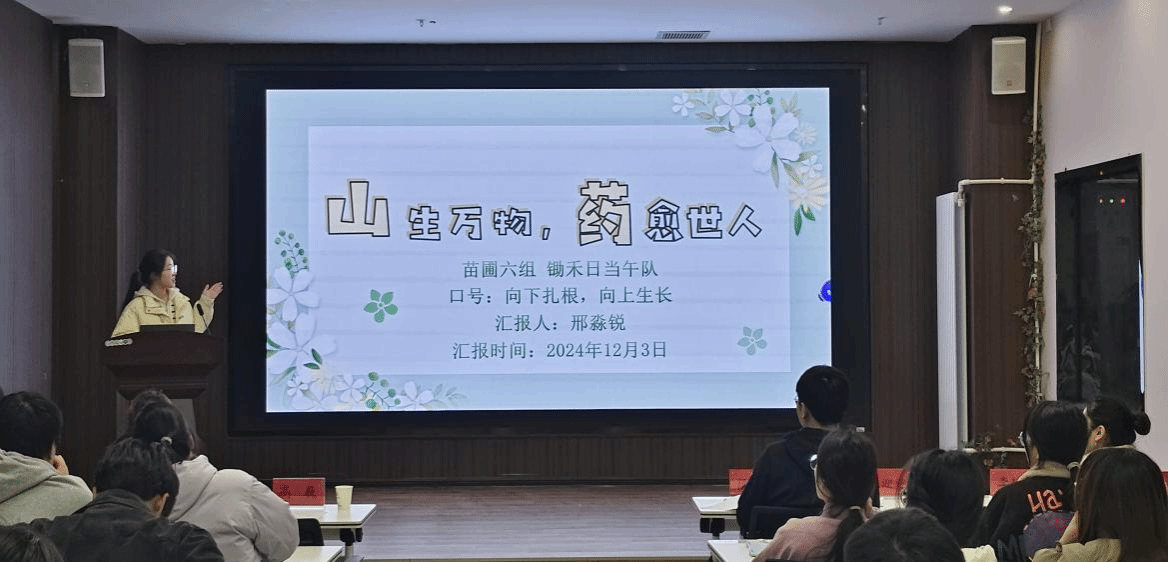 会议伊始,高巍首先对苗圃种植近一年所取得的成果表示肯定,她强调中药种植对于促进学生成长成才的重要意义,鼓励同学们从实践中体会劳动精神,在中草药成长过程中探寻中医药的奥秘和深厚底蕴,在汗水与耕耘中感悟老一辈中药人的艰辛和奋斗精神,她对苗圃种植项目的继续推进表达了深切的期望。接着,苗圃种植学生负责人李菊香以详实的数据为大家汇报自项目启动以来所取得的各项成果以及苗圃种植中存在的问题,她呼吁全体成员继续携手努力,为苗圃种植项目的持续发展贡献力量。会上,20余个代表队对种植的地黄、山药、菊花、板蓝根等二十余味中药进行详细介绍,通过PPT展示对从翻土、育苗、种植、田间管理到采收的过程进行介绍和经验分享。在此期间,同学们对中药种植的全过程有了更深层次的学习与了解。会议最后,段懿哲对同学们的辛勤付出及取得的显著成绩给予鼓励,并表示下一年将根据队伍结构及需求,积极招募新同学加入,为苗圃种植项目注入新的活力。