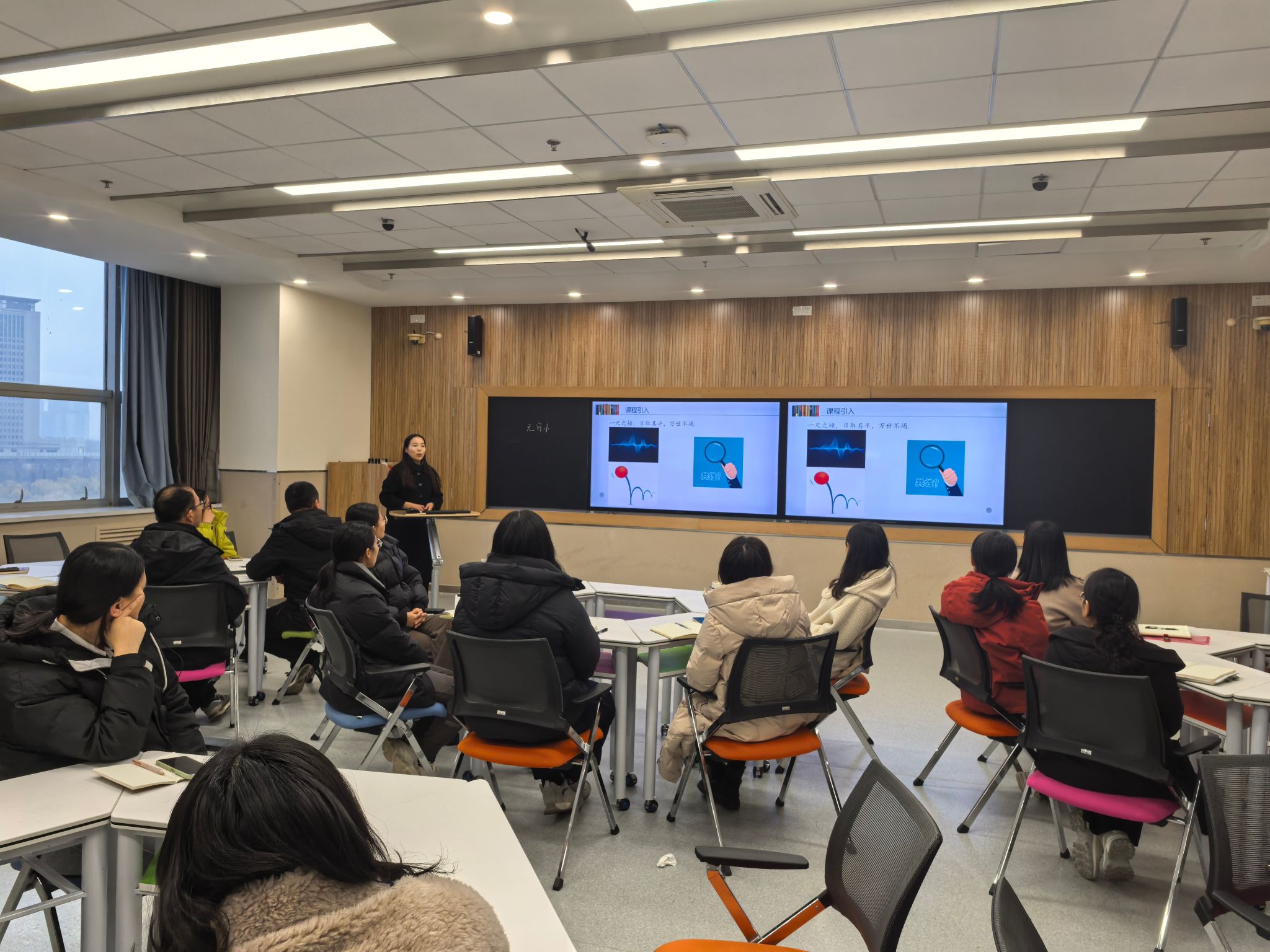 黄琼老师围绕《高等数学》课程中的“无穷小”这一主题,深度融合“课程思政”的教育理念,巧妙的将中国传统文化中极限思想“一尺之锤,日取其半,万世不竭”融入教学中,采用多样化的教学手段和现代化的教学设备,呈现了一场生动且富有启发性的示范教学,出色的课堂管理能力、活跃生动的课堂氛围,赢得了大家的一致称赞,充分展示了青年教师的教学风采。