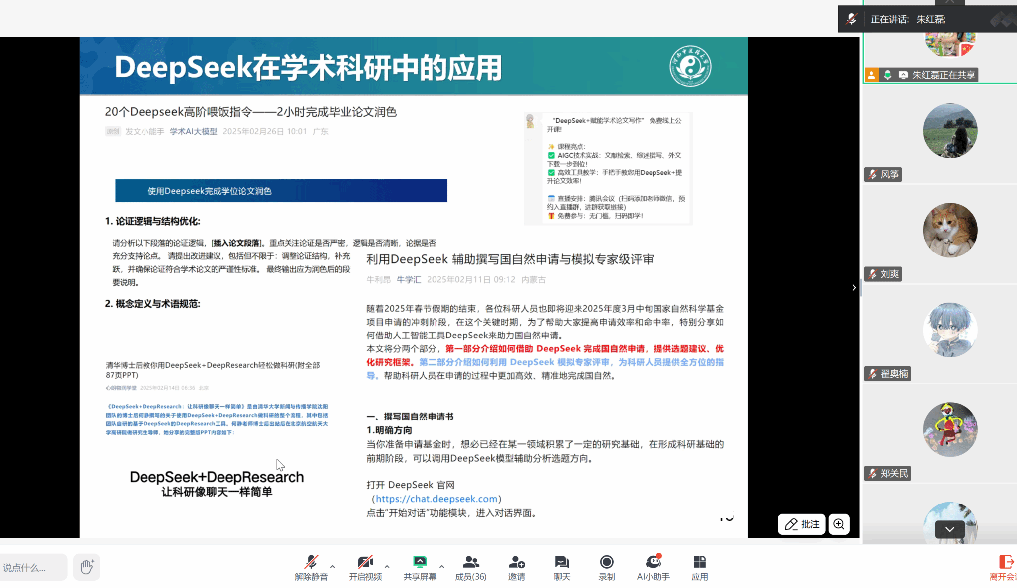 报告从DeepSeek的发展背景、DeepSeek的应用、以DeepSeek为代表的生成式人工智能技术和大语言模型在学术科研应用中存在的问题三个方面进行了分享交流。