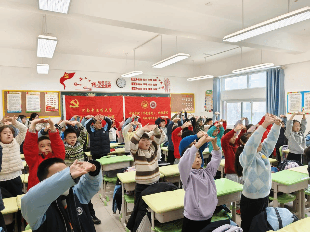 本网讯(文/图 秦中朋)中医文化进校园,传承国粹浸童心。为深入弘扬和践行雷锋精神,促进中医药文化传播,帮助更多的中小学生感知中医药、了解中医药、认识中医药、爱上中医药,2025年3月6日上午,“豫健仲景”本硕博中医药志愿服务团受邀走进郑东新区康平小学,为小学三年级的同学们带来了一场精彩纷呈的“中医药文化体验”活动。中医学院(仲景学院)、仲景书院分团委副书记秦中朋和“豫健仲景”本硕博中医药志愿服务团共8名师生志愿者参与活动。