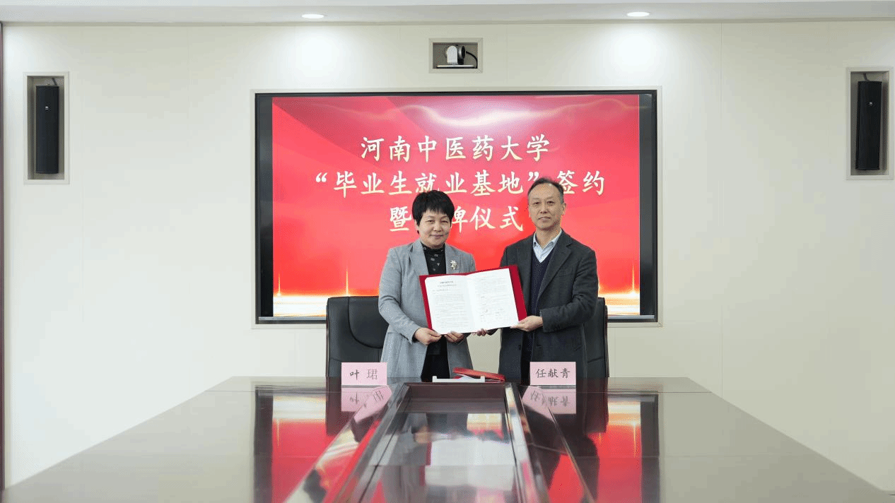 会上,任献青与叶珺代表双方签署了《河南中医药大学毕业生就业基地协议》,任献青为郏县人民医院授予“河南中医药大学毕业生就业基地”牌匾。