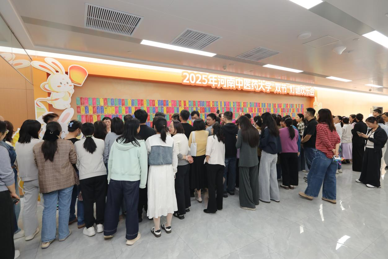 本网讯(文/赵会杰 图/吴晋一)中秋月盈,家国同庆。为迎接 2025年中秋与国庆 “双节”到来,丰富全校工会会员的节日文化生活,营造温馨祥和的节日氛围,9月29日下午,河南中医药大学 “双节” 灯谜欢乐会在俊学楼 B101会议厅南侧长廊热闹开启,全校工会会员踊跃参与,共赴一场兼具趣味性与文化味的节日盛宴。校党委副书记、工会主席张加民亲临现场,与教职工们一同感受双节的喜庆氛围。