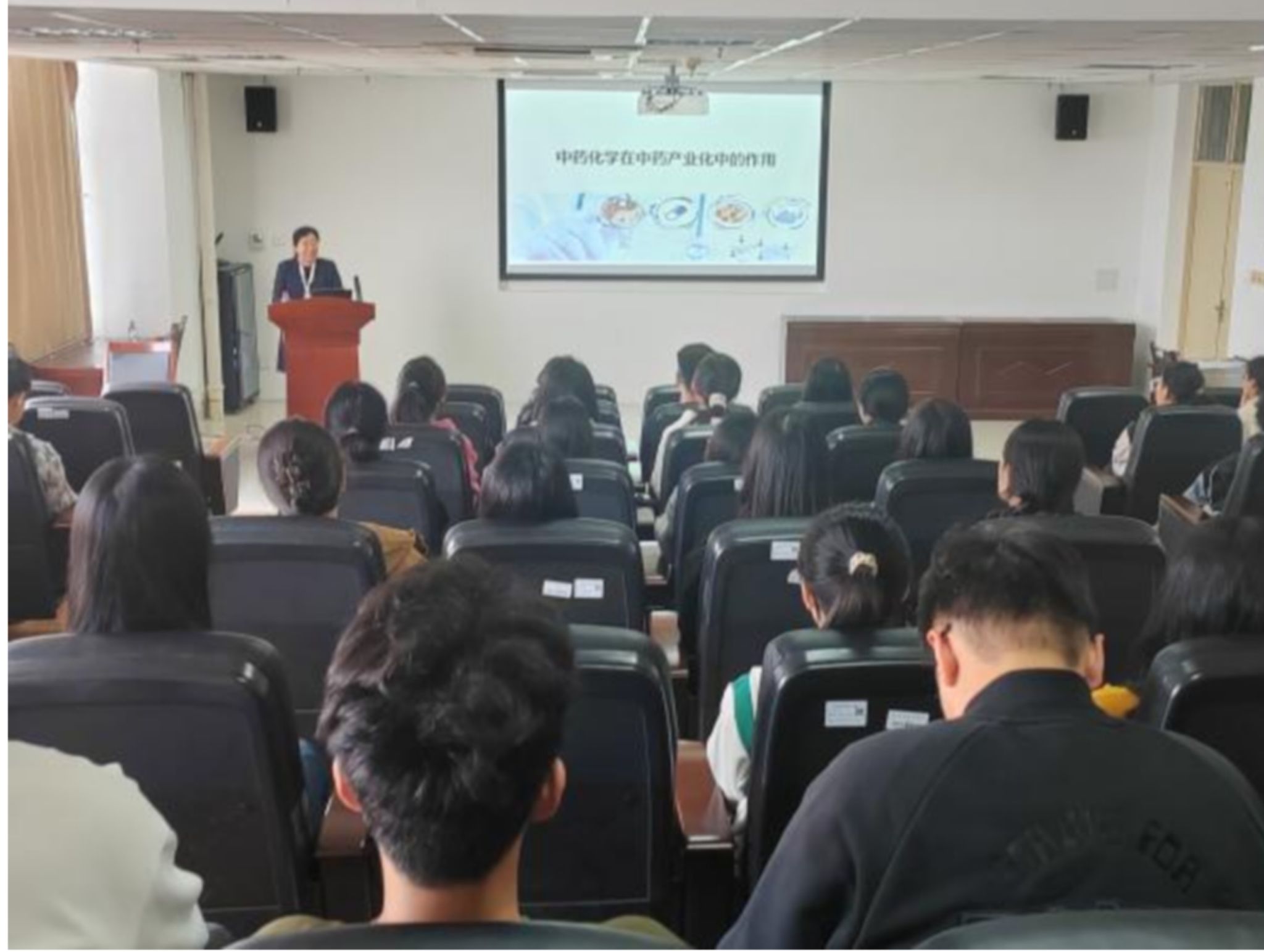 孙彦君以“中药化学在中药产业化中的应用”为题,结合丰富科研实例与前沿动态展开讲座。在质量标准建设方面,提及“深入研究,浅出标准”理念,以小叶莲薄层鉴别优化并获专利为例,说明中药化学对标准完善的作用;在制剂剂型改进上,以丹参多酚酸盐制备为例,讲解如何依据成分理化性质选择合适剂型;在新药研发领域,介绍黄酮类成分在肿瘤治疗药物研发中的应用及青蒿素的发现历程。同时,孙彦君还特意分享了屠呦呦团队攻坚克难提取青蒿素、推动中医药走向世界的科研创新事迹,并勉励学生以老一辈科学家为榜样,传承严谨求实、勇于探索的科学创新精神,将专业知识与中医药事业发展需求紧密结合,在科研道路上坚定信念、不懈钻研。讲座内容兼具专业知识传授与价值引领,学生纷纷表示深受启发。